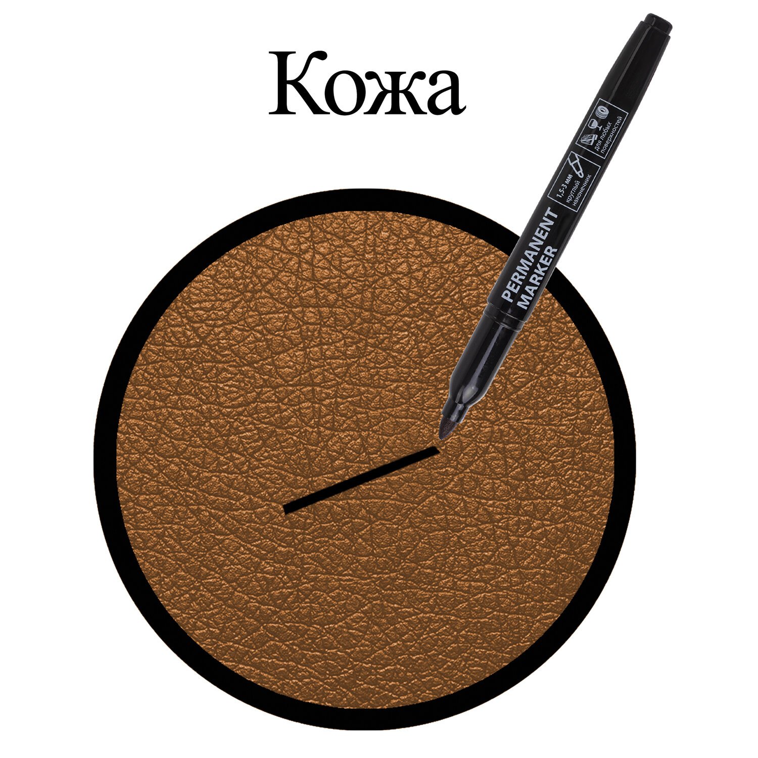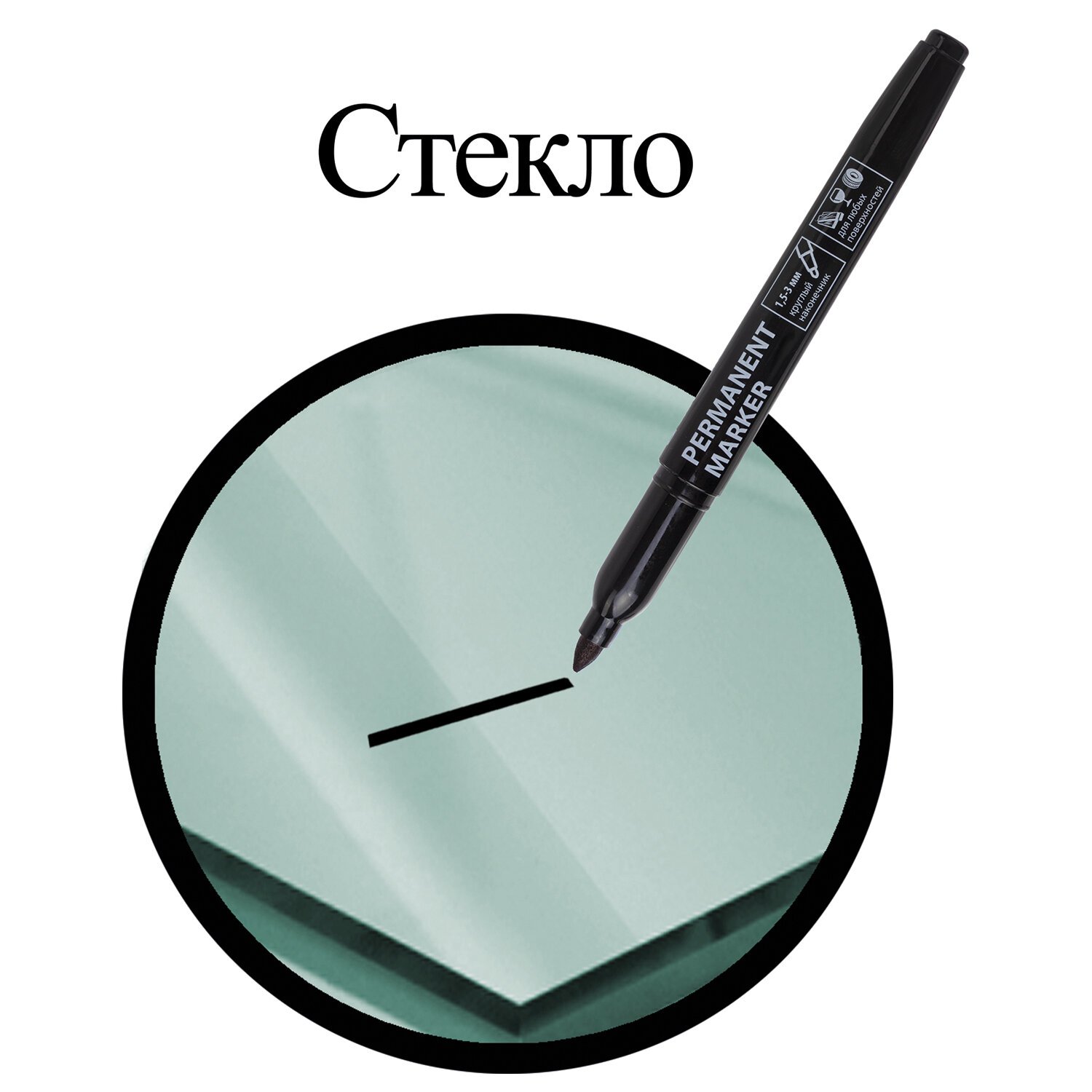 Перманентный маркер черного цвета имеет пластиковый корпус круглой формы диаметром 12,4 мм. Толщина линии письма - 1,5-3 мм в зависимости от угла наклона. Особая нестираемая основа перманентного маркера обеспечивает такие качества, как стойкость к воздействию воды, ультрафиолета, низких и высоких температур. Благодаря спиртовой основе чернила быстро сохнут и не размазываются. Износостойкий фетровый наконечник устойчив к повреждениям и обеспечивает экономный расход чернил.