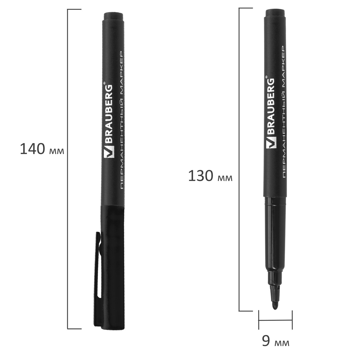 Маркер перманентный BRAUBERG "Super Slim", ЧЕРНЫЙ, тонкий металлический наконечник 0,8 мм, 151632