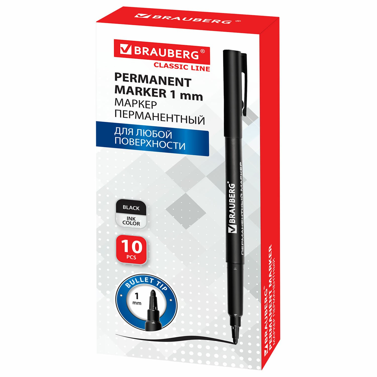 Маркер перманентный BRAUBERG "CLASSICLine", ЧЕРНЫЙ, тонкий наконечник 1 мм, 150296