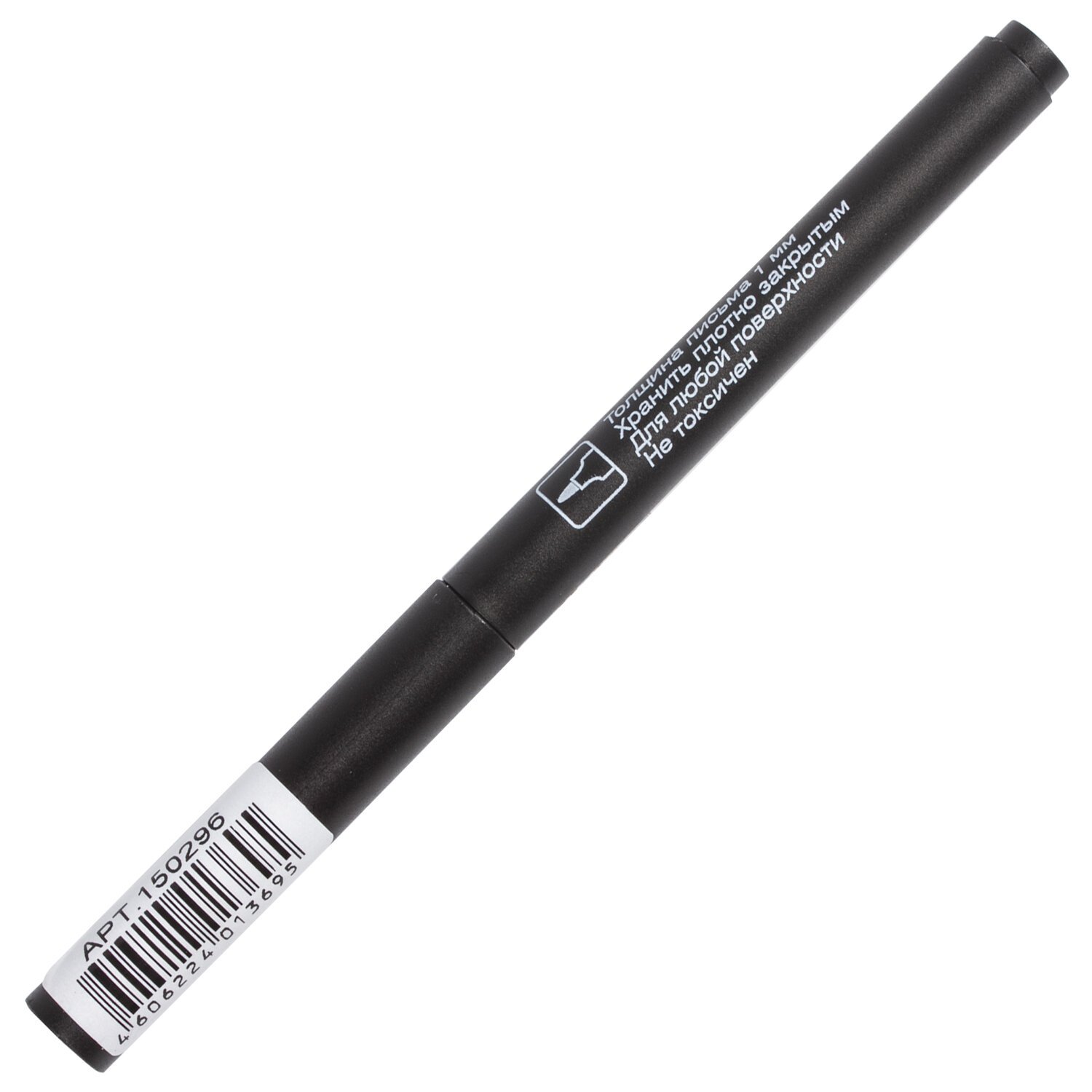 Изделие не перезаправляется. Плотно закрывается колпачком, что предотвращает высыхание наконечника и чернил. Благодаря толщине линии письма 1 мм можно создавать тонкие, аккуратные линни. Спиртовая основа быстросохнущих чернил. Круглая форма корпуса из пластика, диаметр которого 9 мм.