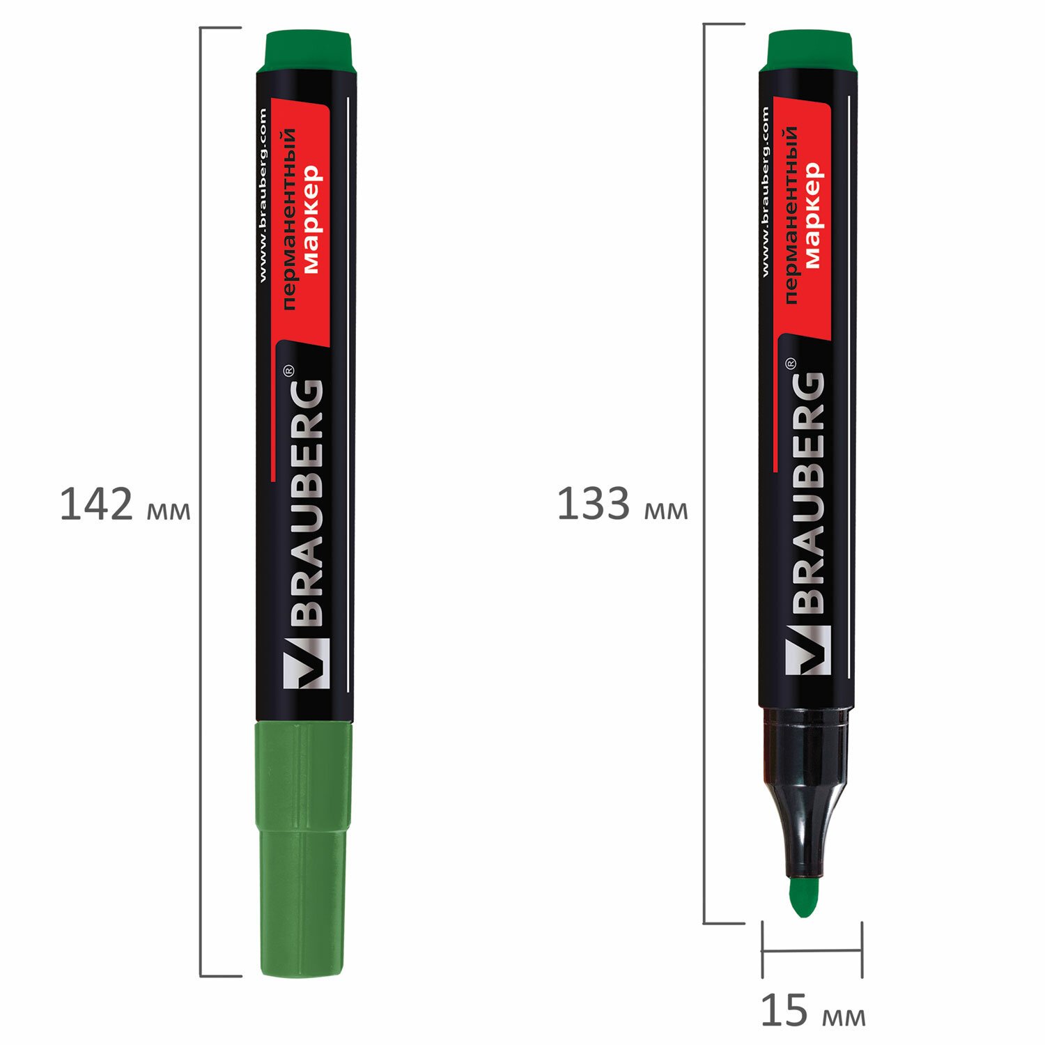 Маркер перманентный ULTRA MARKER, ЗЕЛЕНЫЙ, 3,5 мм, с клипом, BRAUBERG, 152207
