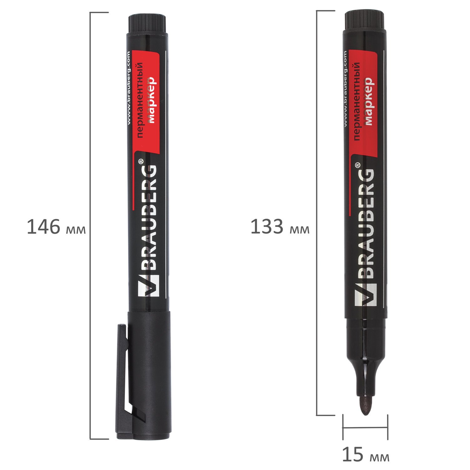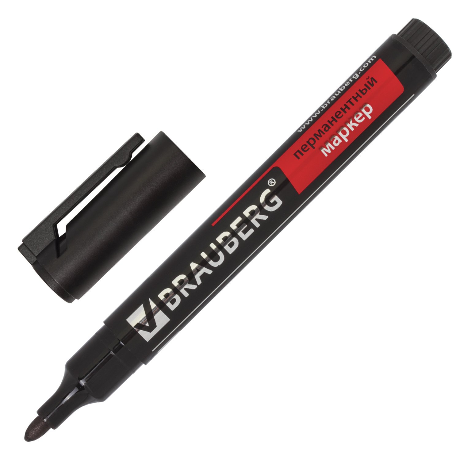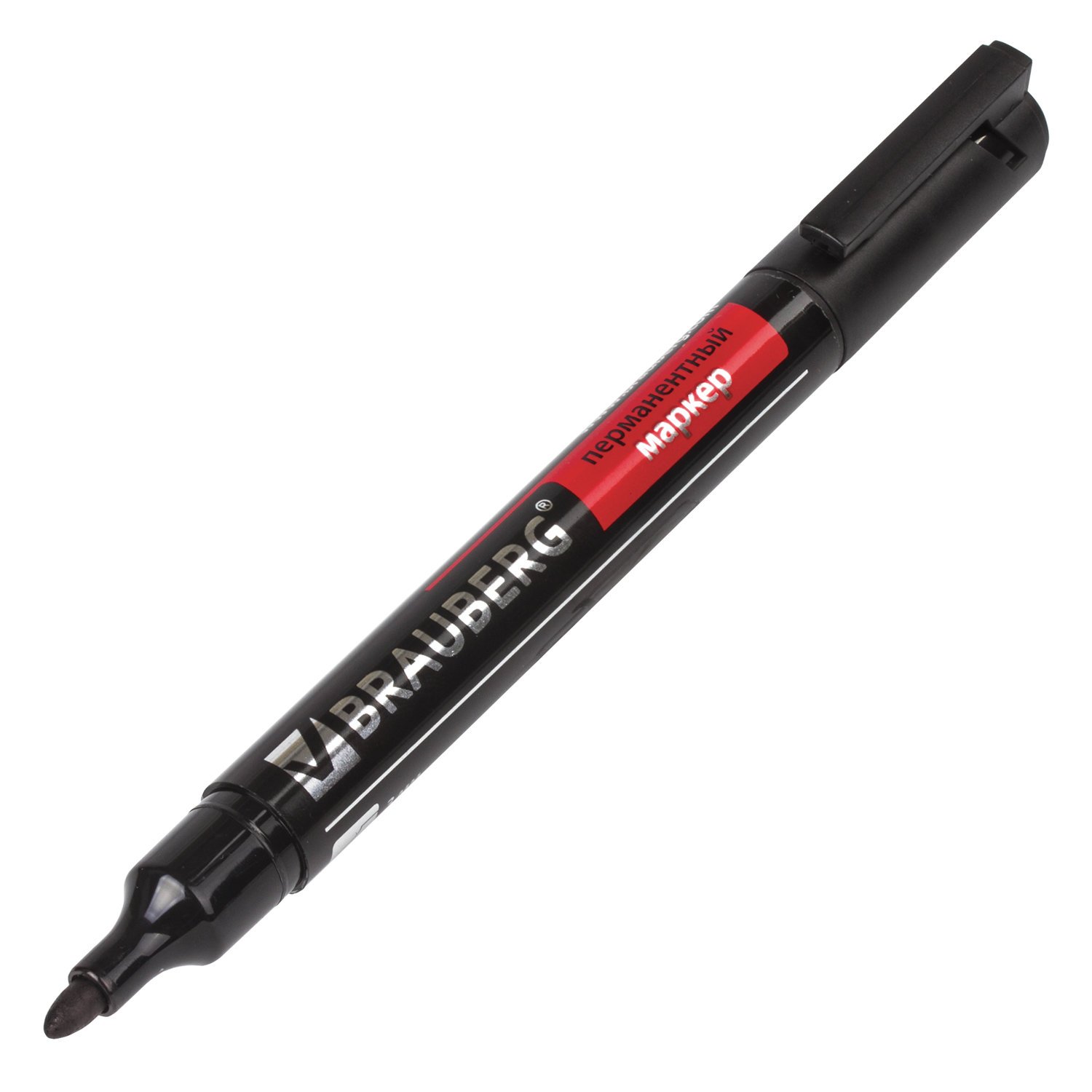 Маркер перманентный BRAUBERG "Classic", ЧЕРНЫЙ, круглый наконечник, 3 мм, с клипом, 150300