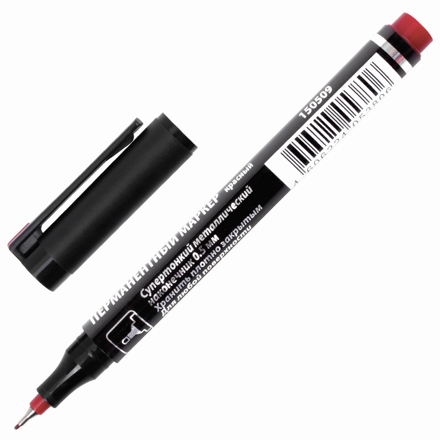 Маркер перманентный BRAUBERG "Jet", КРАСНЫЙ, супертонкий металлический наконечник 0,5 мм, 150509