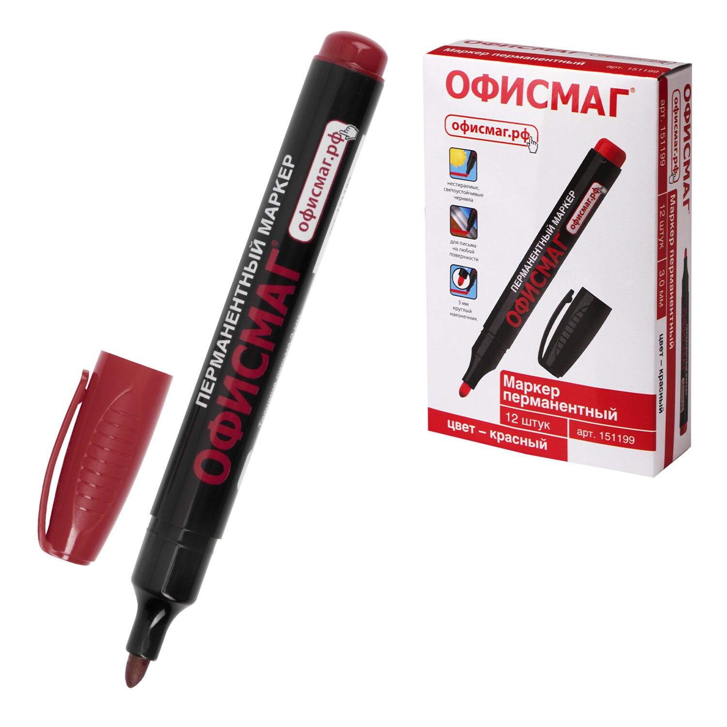 Маркер перманентный ОФИСМАГ, КРАСНЫЙ, круглый наконечник, 3 мм, с клипом, 151199