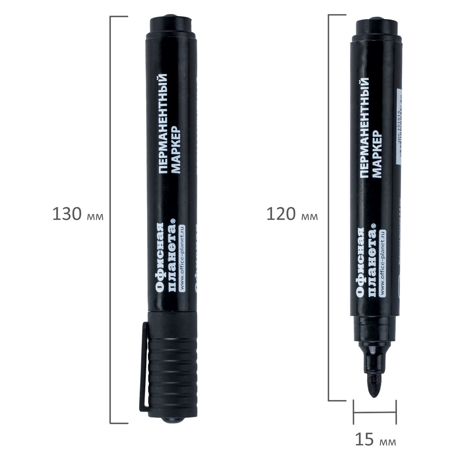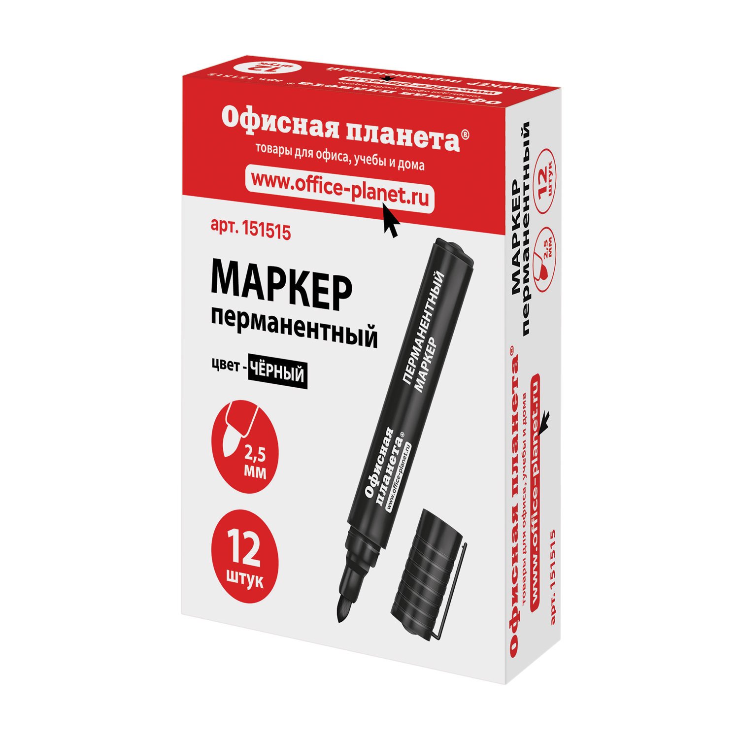Маркер перманентный ОФИСНАЯ ПЛАНЕТА, ЧЕРНЫЙ, круглый наконечник, 2,5 мм, 151515