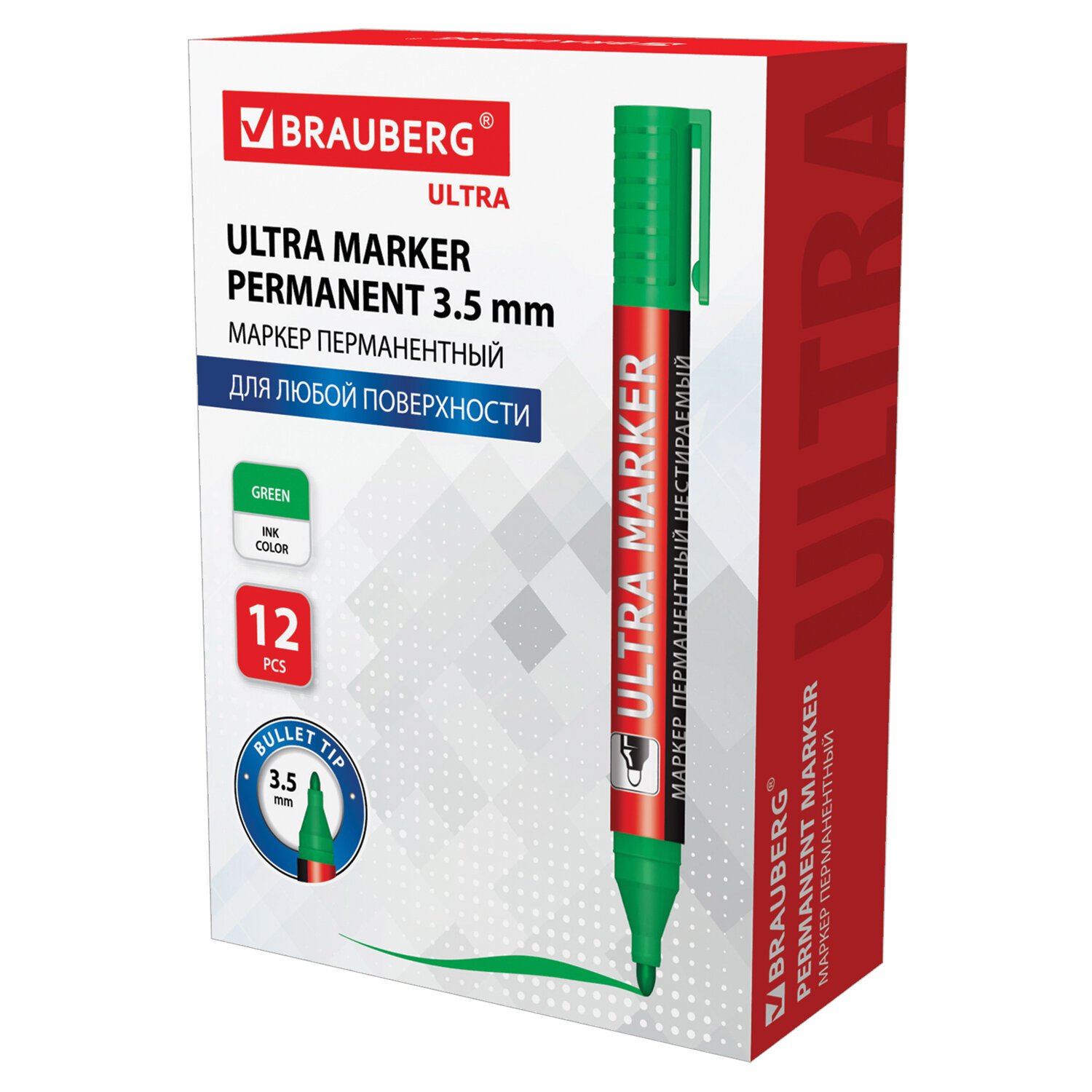 Маркер перманентный ULTRA MARKER, ЗЕЛЕНЫЙ, 3,5 мм, с клипом, BRAUBERG, 152207