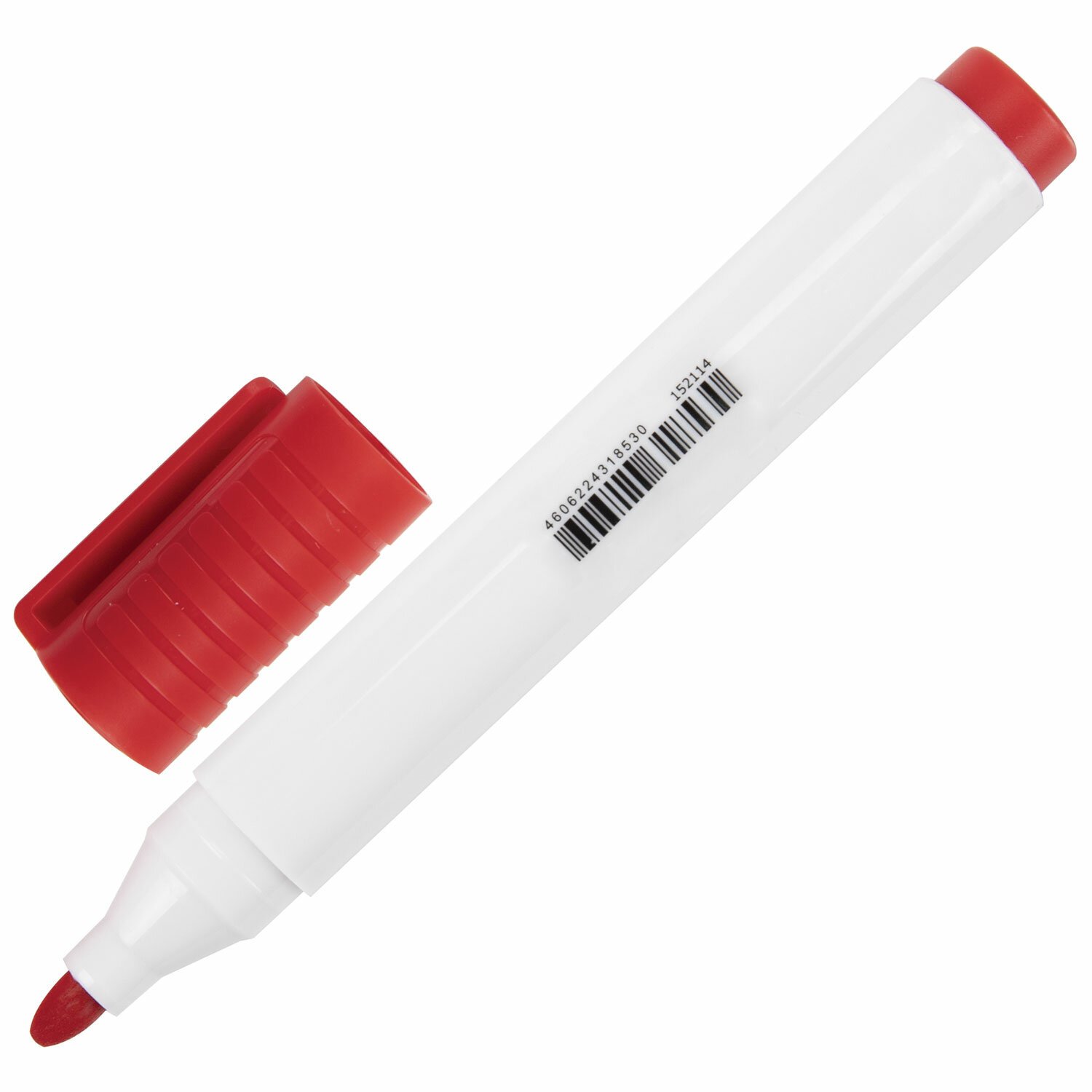 Маркер для доски красного цвета обладает круглым пластиковым корпусом диаметром 15 мм. Наконечник круглой формы обеспечивает толщину линии письма 3 мм, что позволяет писать крупным шрифтом, который будет хорошо виден. Основа чернил - спиртовая. Чернила быстро высыхают и не оставляют разводов, легко стираются сухой губкой. Изделие не перезаправляется. Цвет колпачка с клипом соответствует цвету чернил.