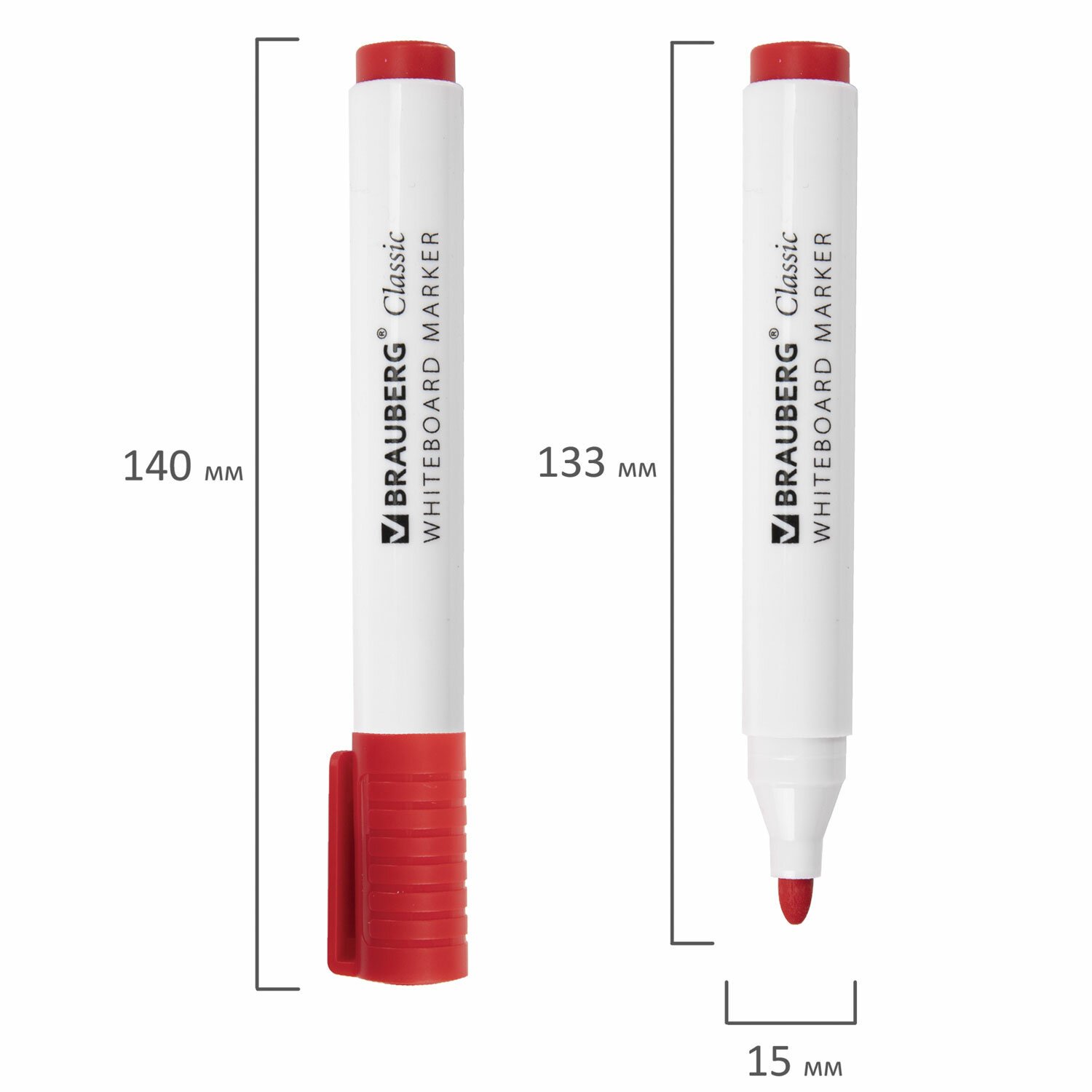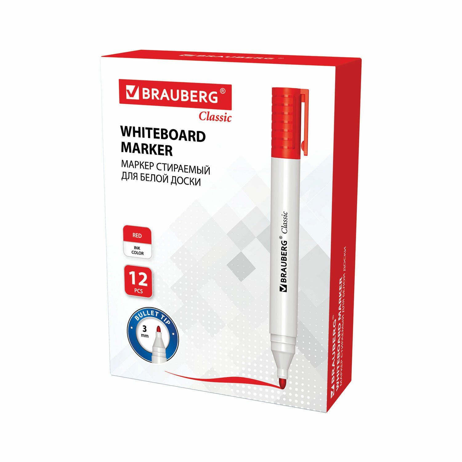 Маркер стираемый для белой доски КРАСНЫЙ, BRAUBERG "CLASSIC", 3 мм, с клипом, 152114