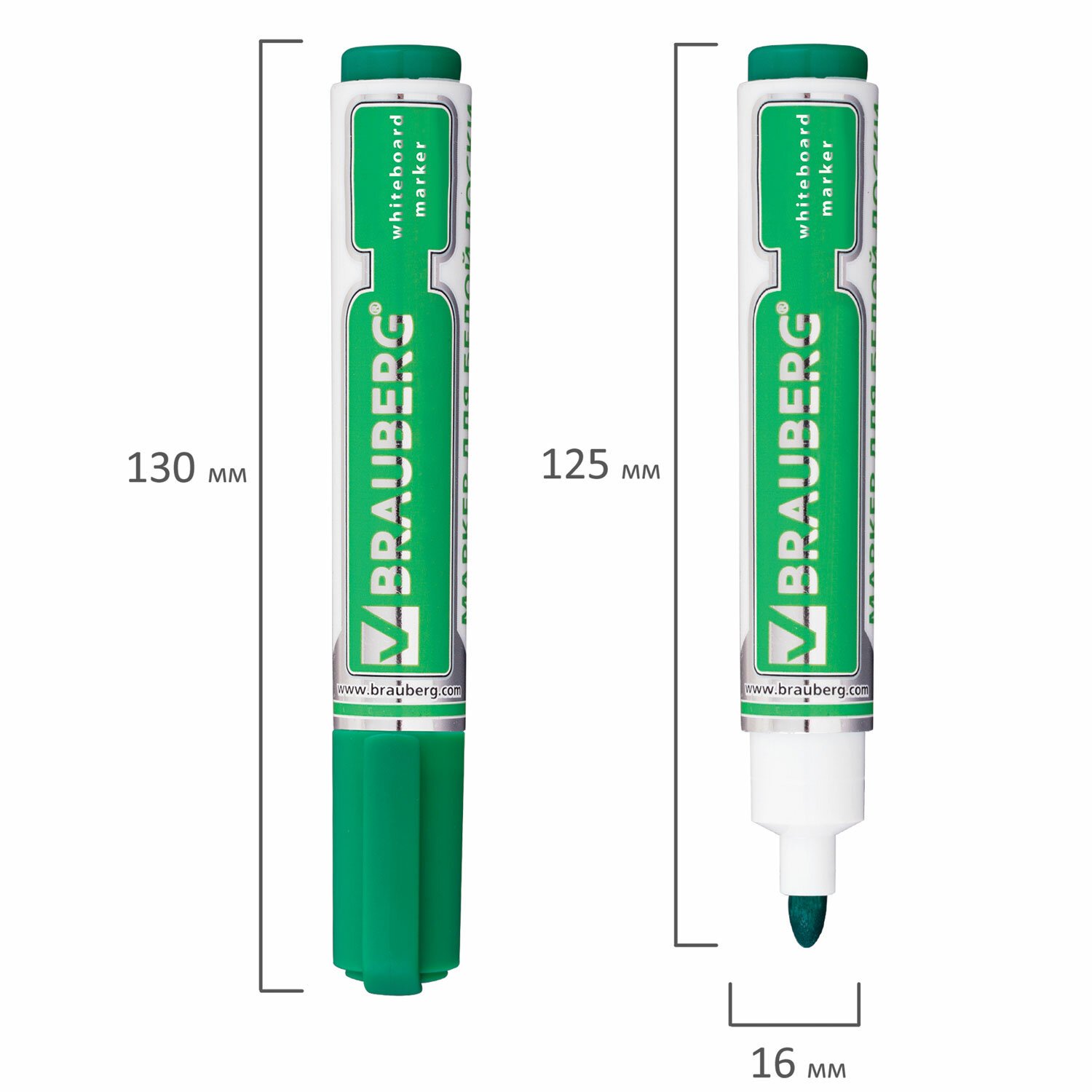 Маркер стираемый для белой доски ЗЕЛЕНЫЙ, BRAUBERG "CLASSIC", 3 мм, с клипом, 152116