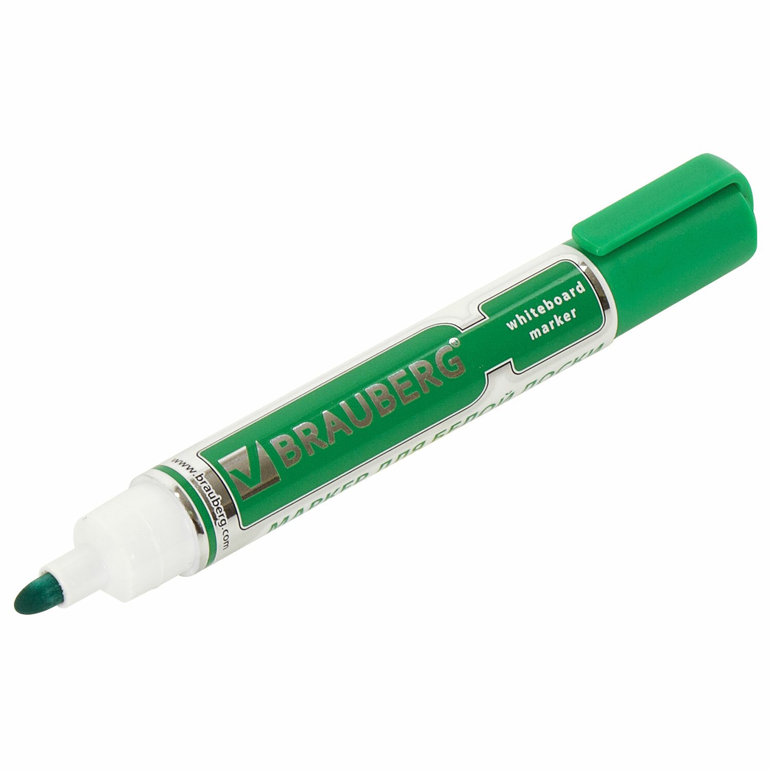 Маркер стираемый для белой доски ЗЕЛЕНЫЙ, BRAUBERG, 4 мм, с клипом, эргономичный корпус, 150849