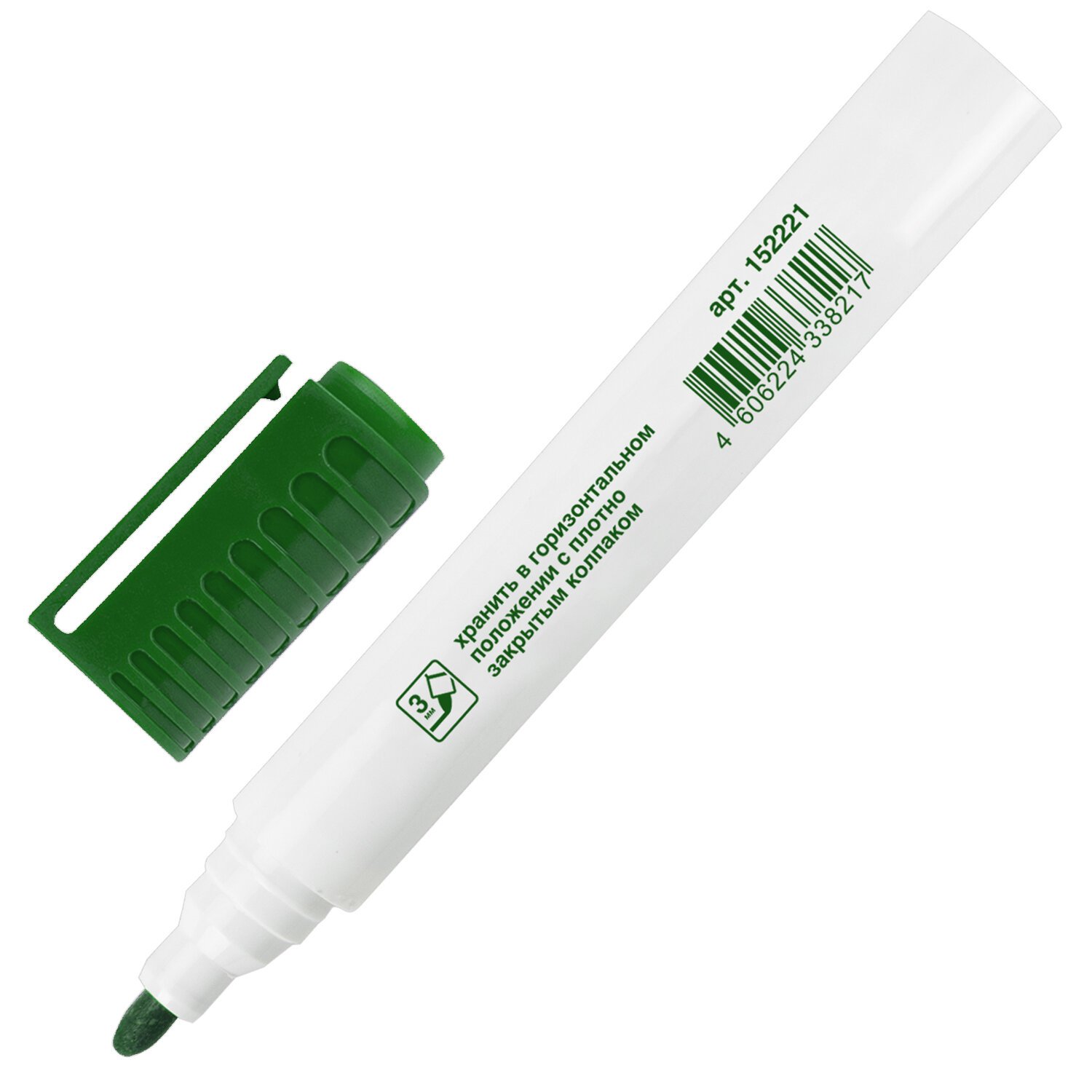 Маркер стираемый для белой доски ЗЕЛЕНЫЙ, BRAUBERG "CLASSIC", 3 мм, с клипом, 152116