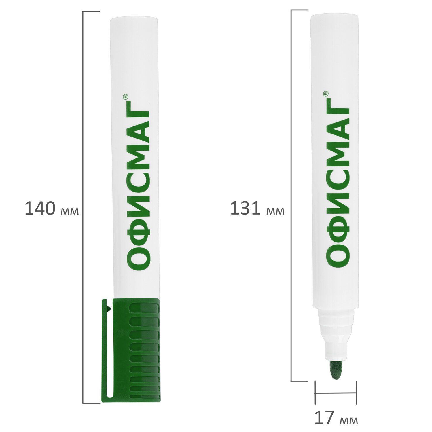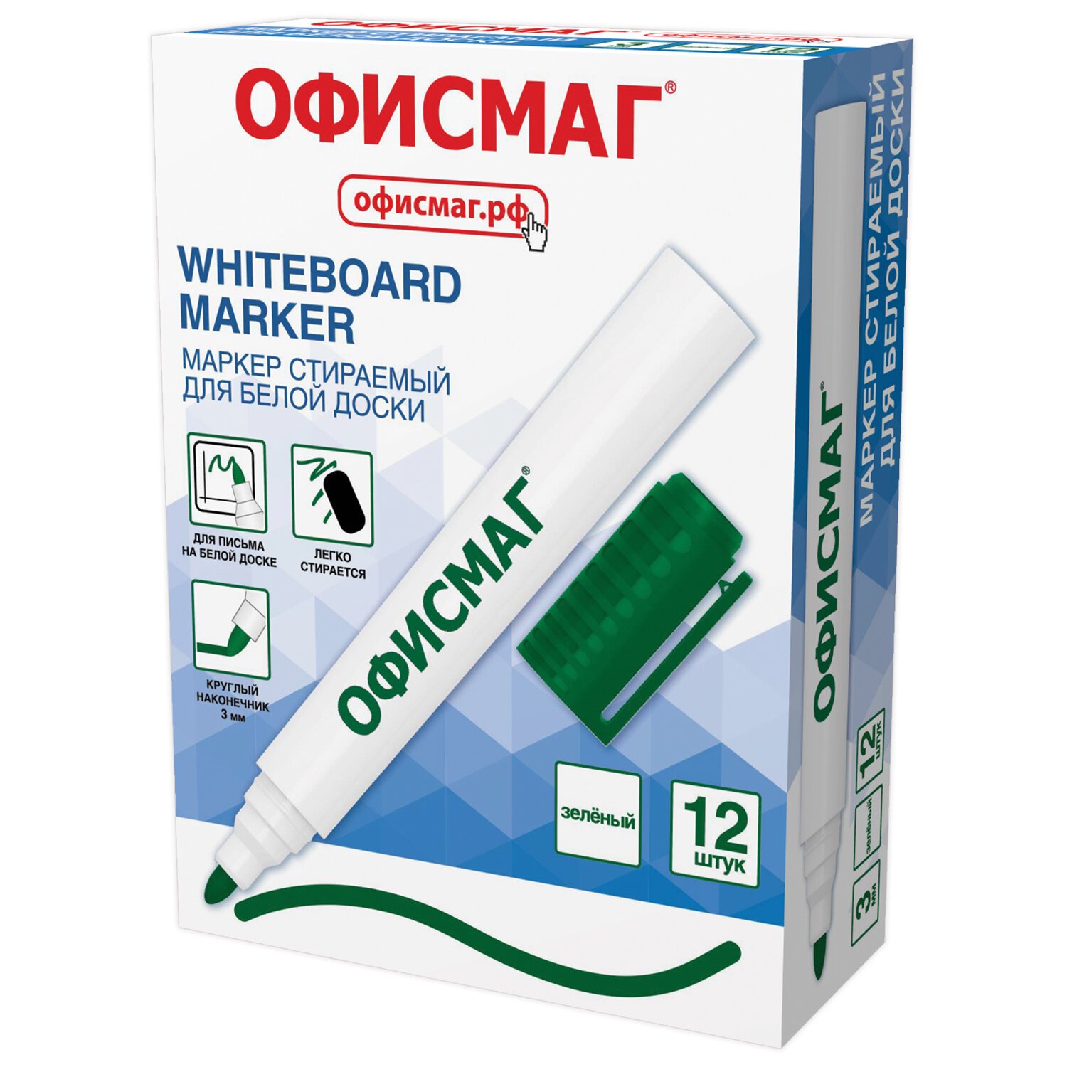 Маркер стираемый для белой доски ЗЕЛЕНЫЙ, ОФИСМАГ, круглый наконечник, 3 мм, 152221