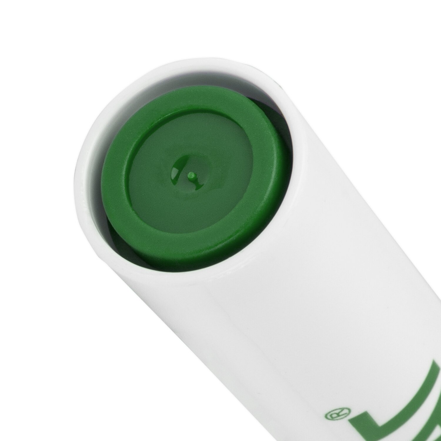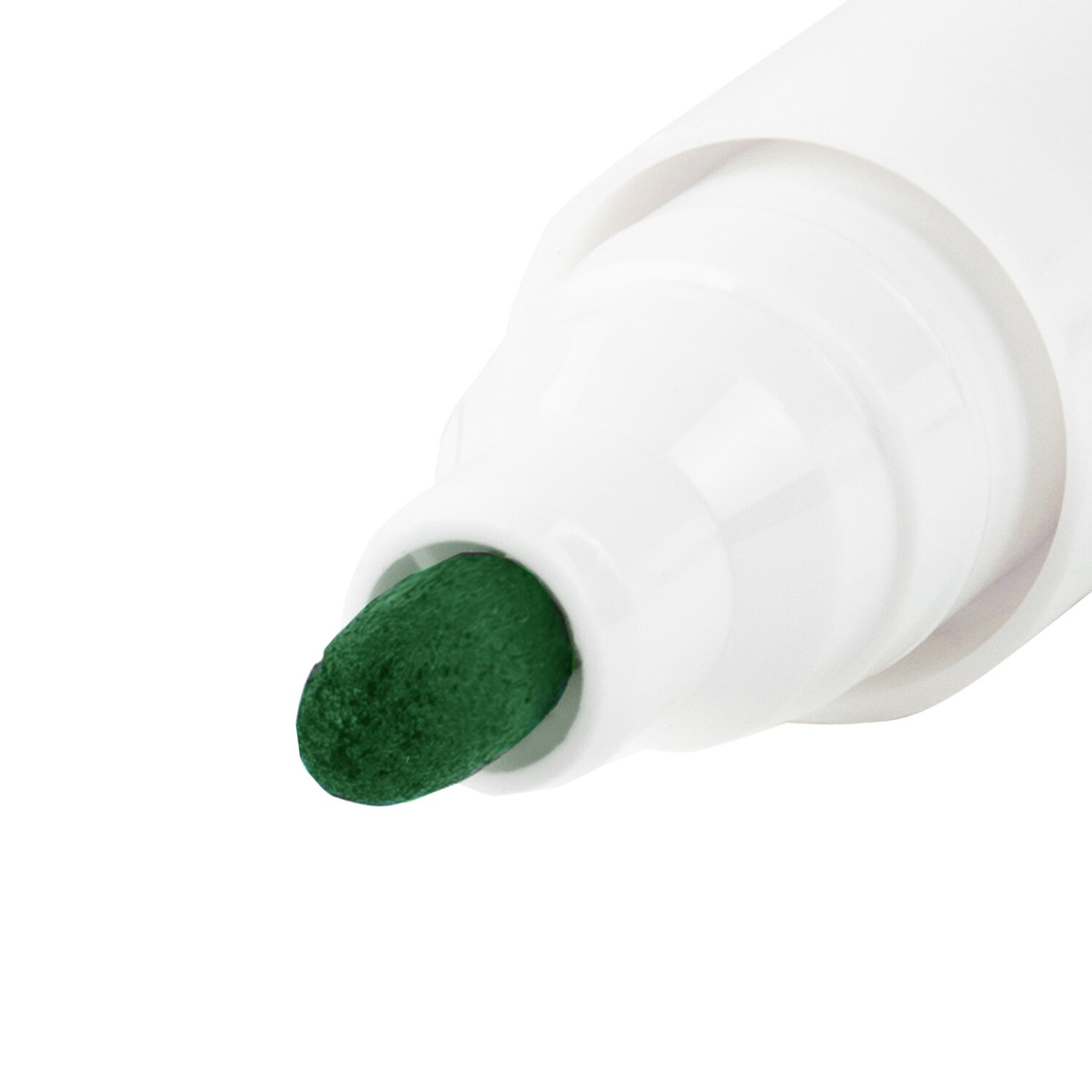 Маркер для доски зеленого цвета имеет круглый пластиковый корпус диаметром 17 мм. Наконечник круглой формы обеспечивает толщину линии письма 3 мм, что позволяет писать крупным шрифтом, который будет хорошо виден. Основа чернил - спиртовая. Чернила быстро высыхают и легко стираются сухой губкой, не оставляя разводов. Изделие не перезаправляется. Цвет колпачка с клипом соответствует цвету чернил.