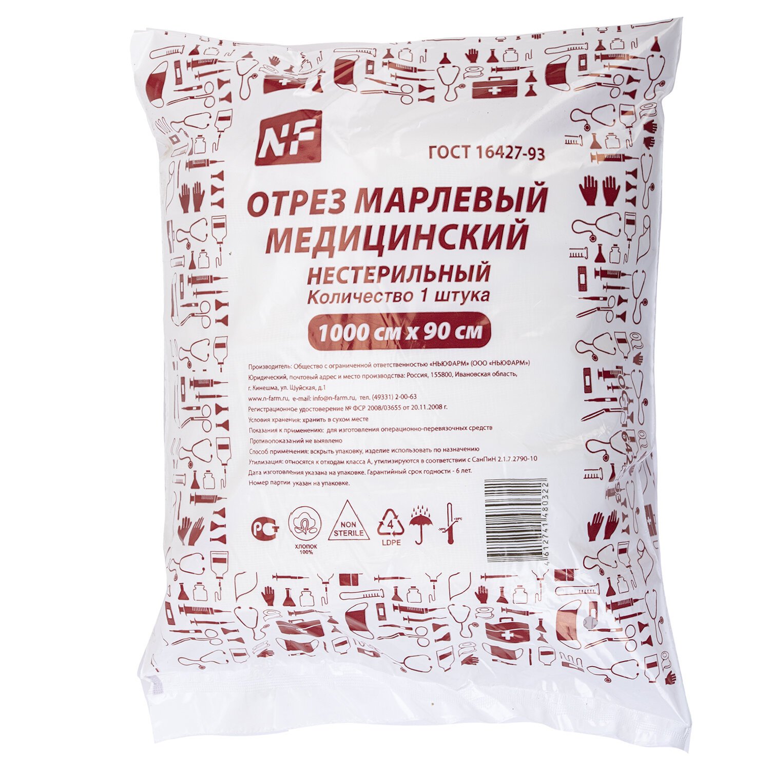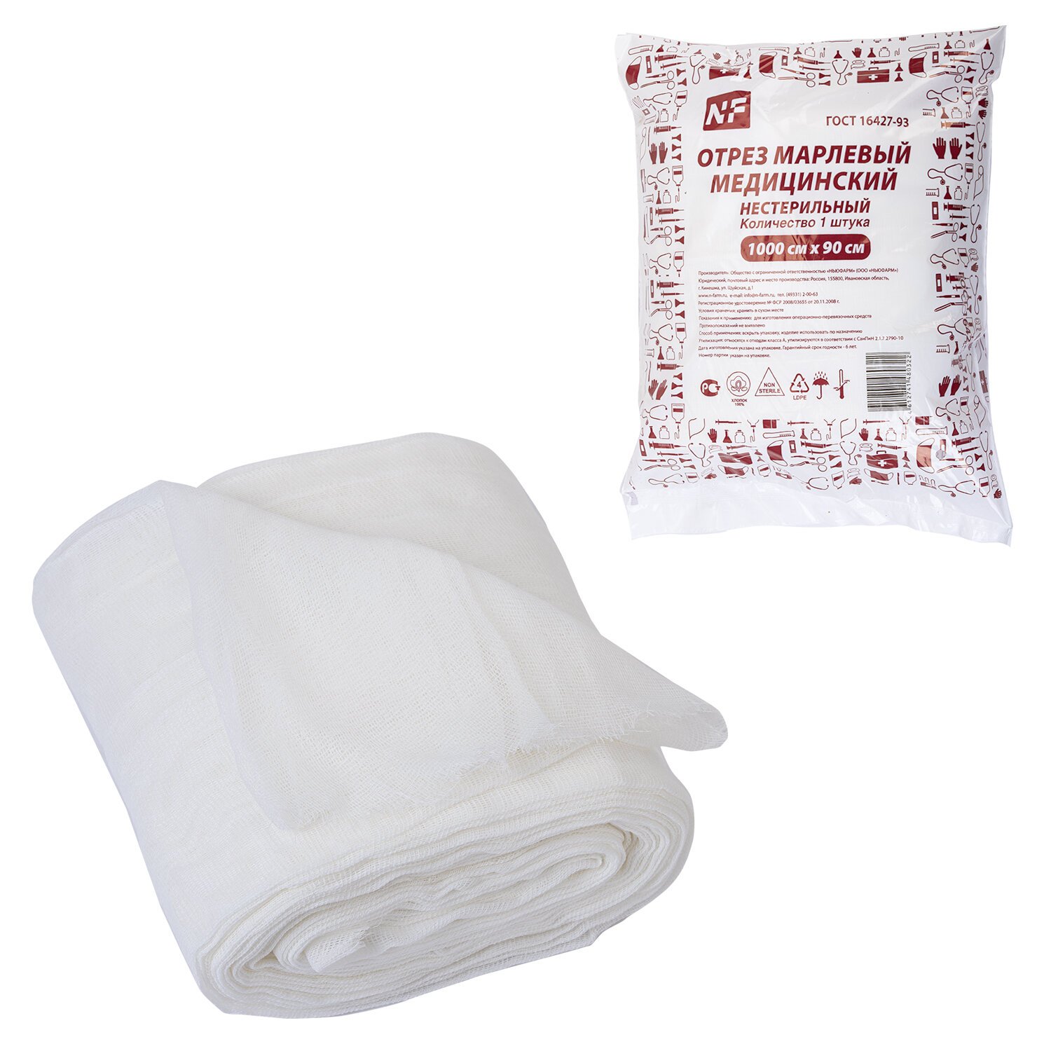 Марля медицинская отбеленная, отрез 0,9х10 м, плотность 36(±2) г/м2, NF