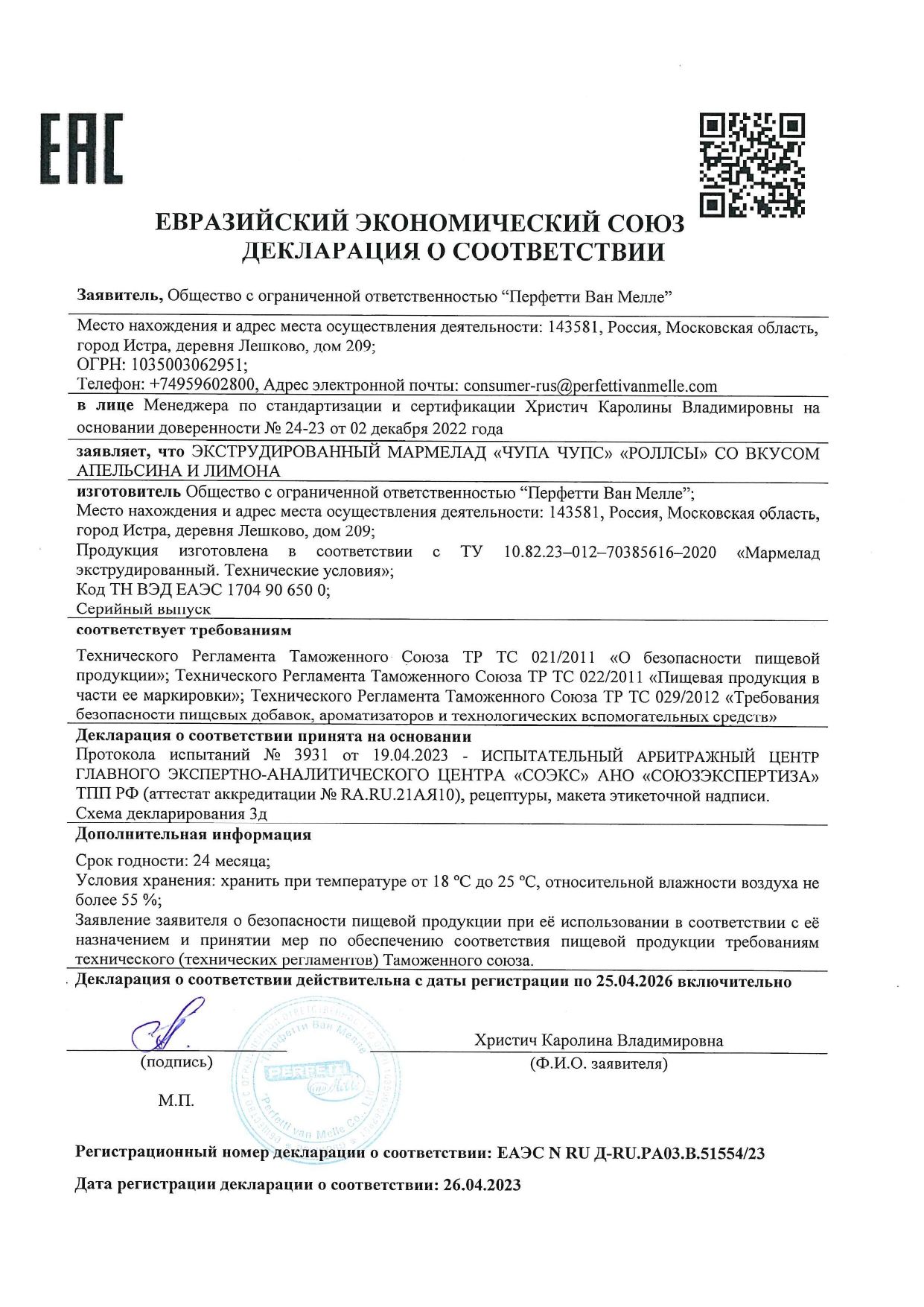 | Фирма-производитель | ООО «Перфетти Ван Мелле» |