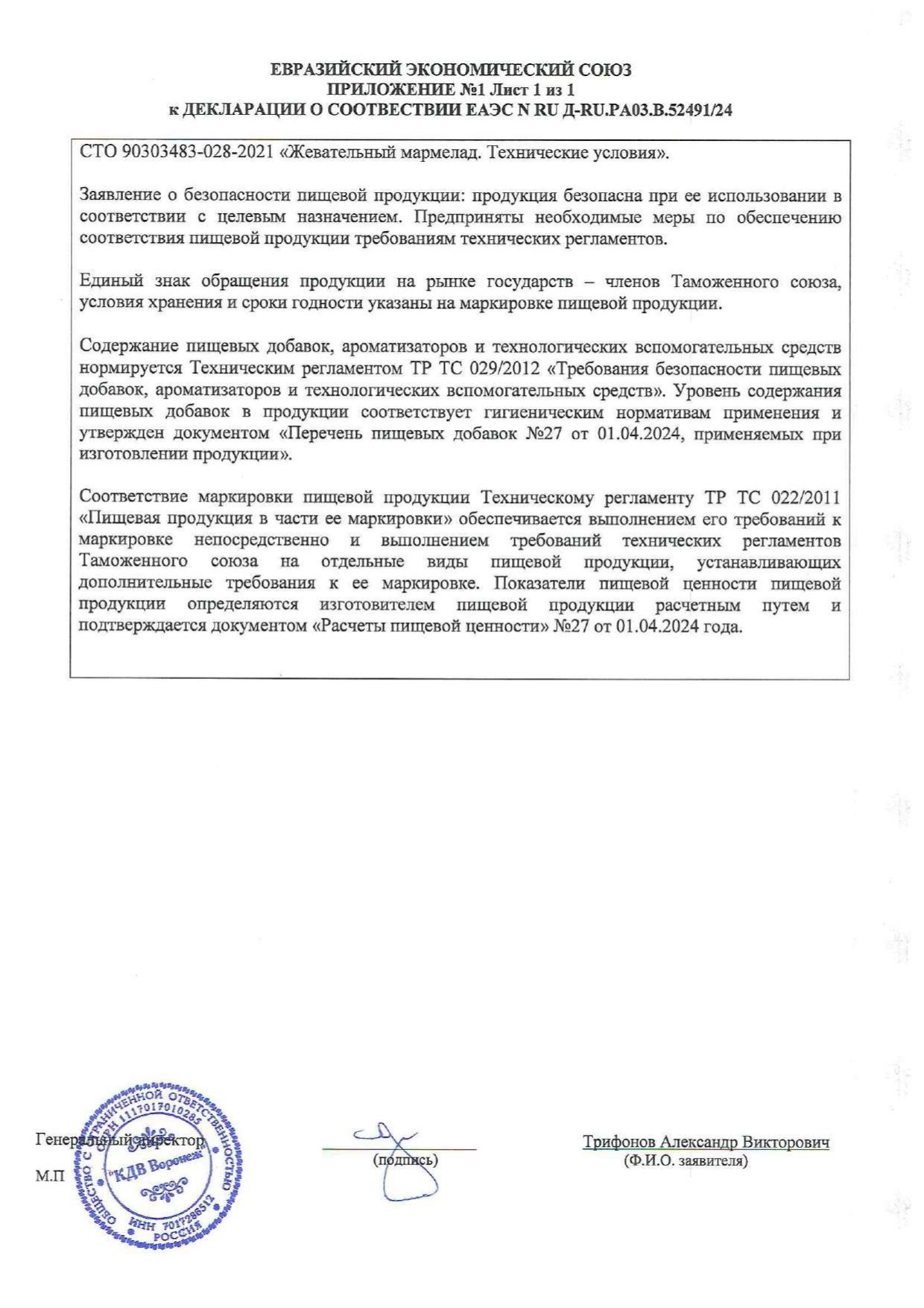 | Соответствует требованиям ГОСТа | ТУ 10.82.23-007-50164020-2011 |