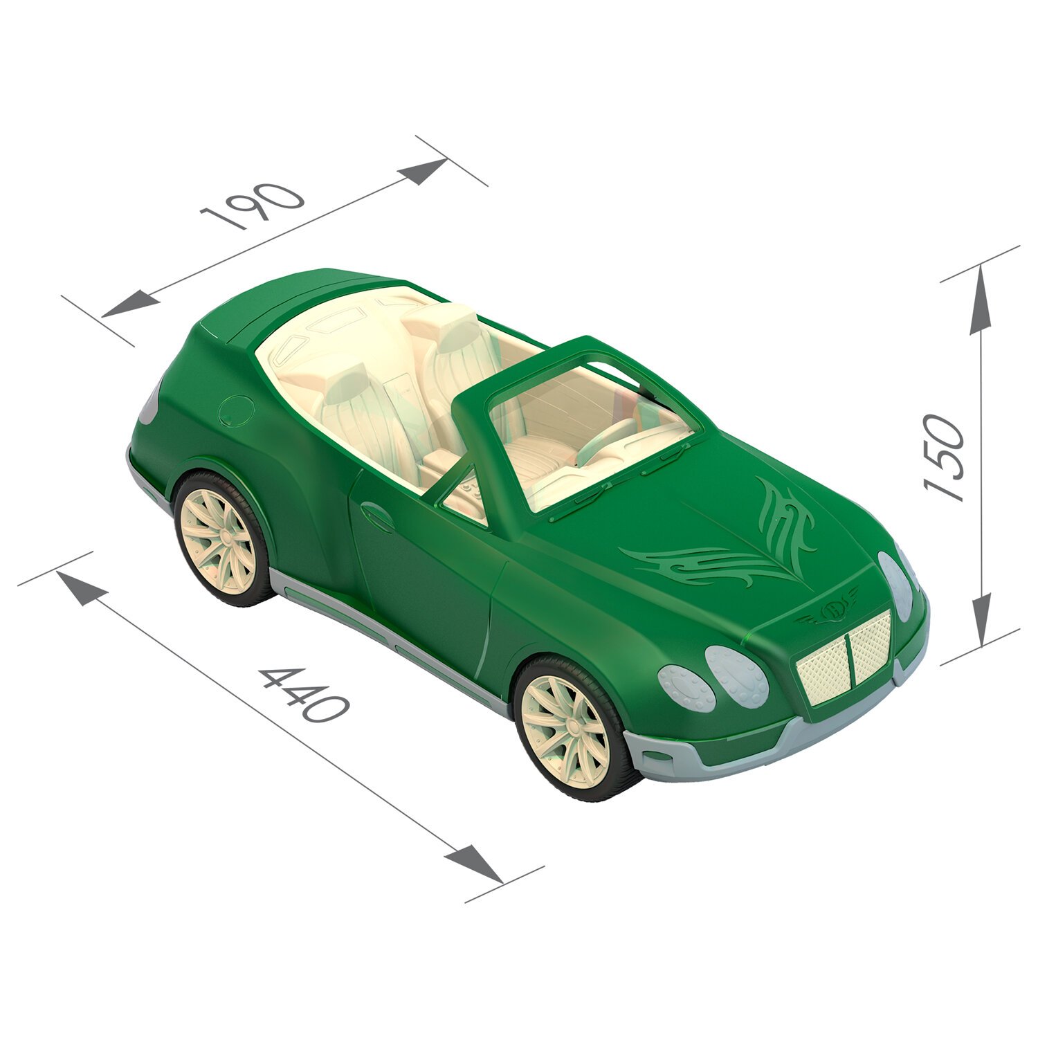 Детская машинка Кабриолет «Шейх» — стильный и безопасный автомобиль для кукол, который порадует маленьких автолюбителей. Благодаря чёткой деталировке и эксклюзивным цветами, она станет ярким дополнением коллекции игрушек ребёнка. Надежная конструкция из прочного и безопасного пластика гарантирует долговечность, а модная низкопрофильная резина обеспечивает отличную проходимость. Размер машинки составляет 44х19х15 см, что идеально подходит для кукол высотой 30 см.