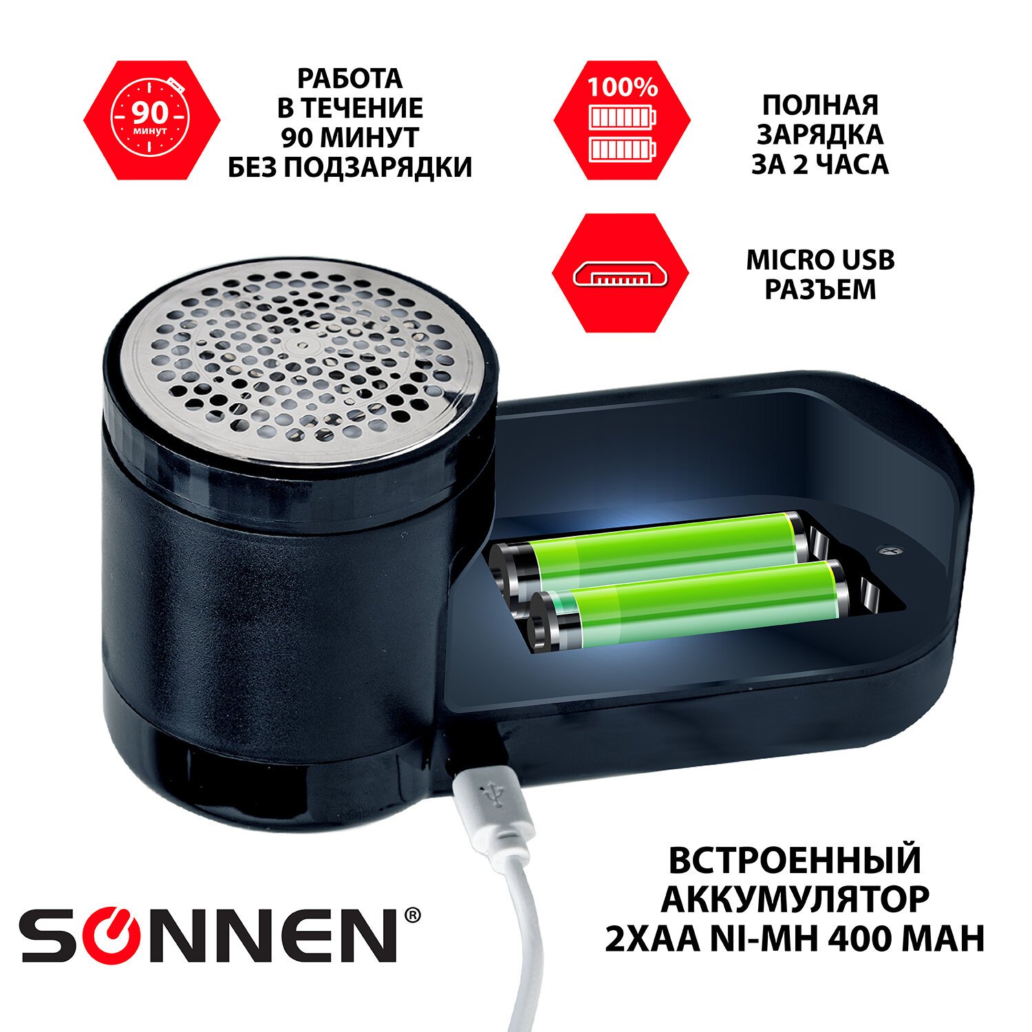 Машинка для удаления катышков с аккумулятором с широкой рабочей поверхностью SONNEN FS-9989, 455467