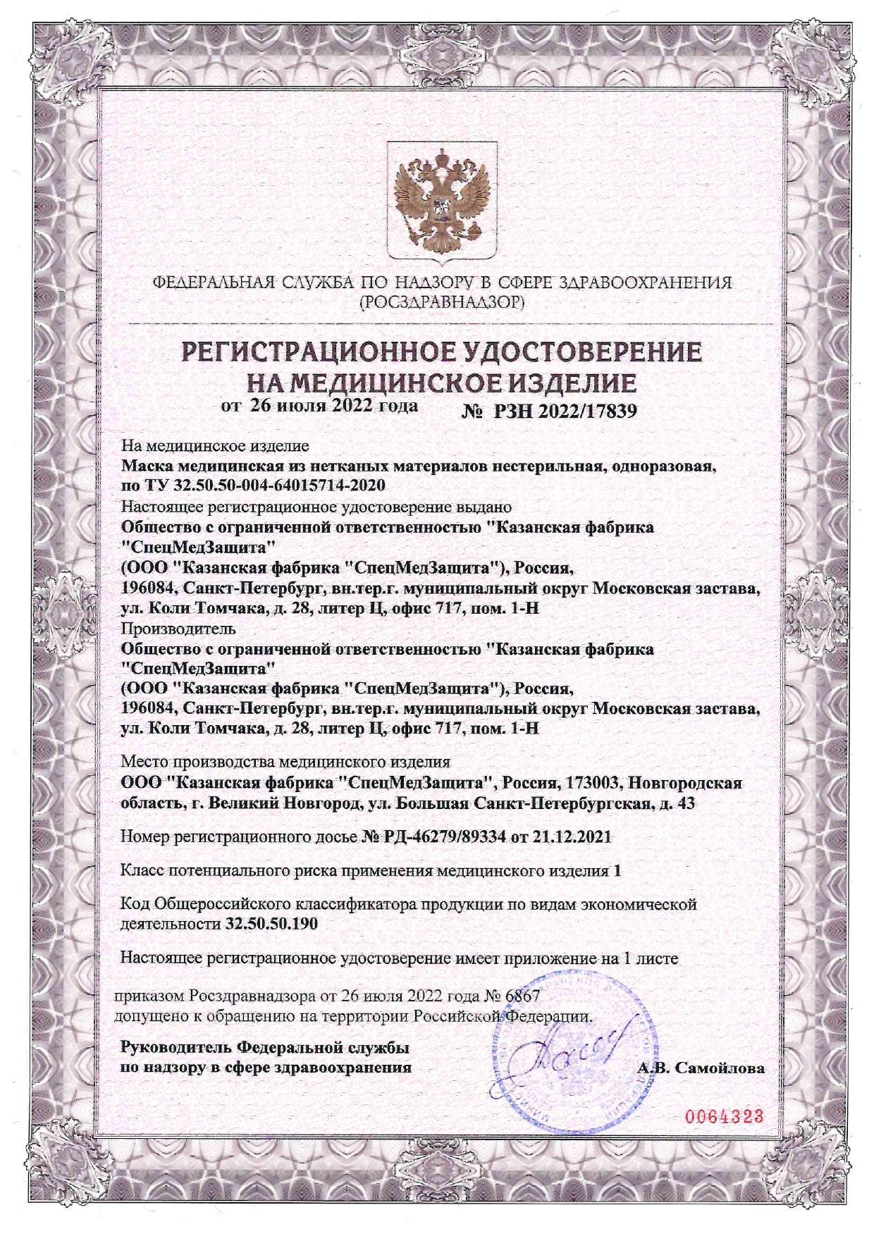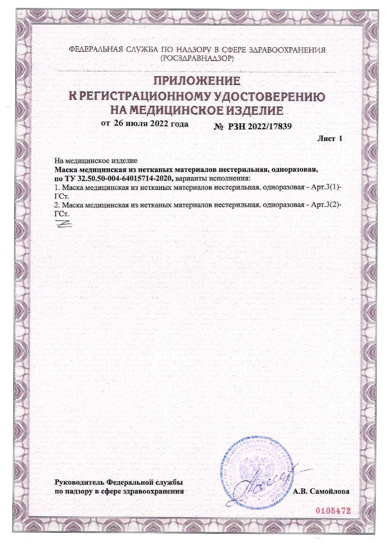 Медицинская нестерильная одноразовая маска изготовлена из современного композитного материала на основе нетканых полипропиленовых волокон, которые состоят из трех слоев: СМС (12 г/м2) – СМС (17 г/м2) – СМС (17 г/м2).