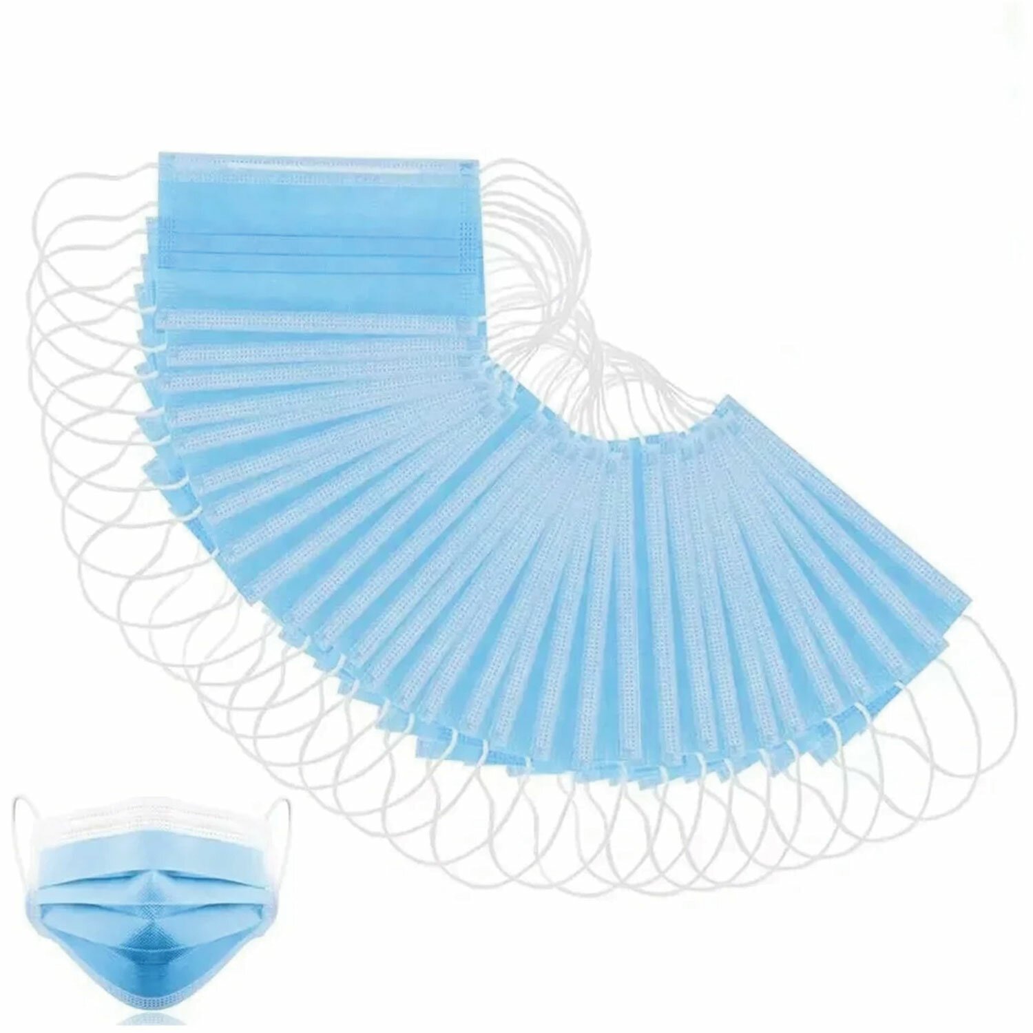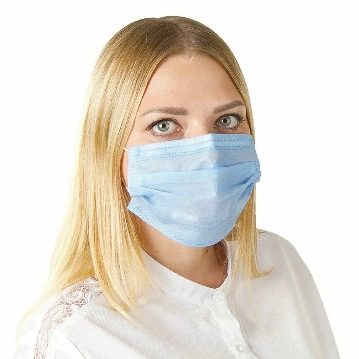 Маски одноразовые медицинские КОМПЛЕКТ 50 шт., 3-х слойные, голубые, фильтр СМС, упаковка полиэтиленовая