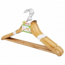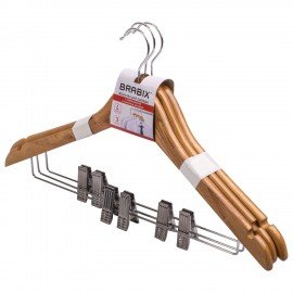 Вешалки-плечики, размер 48-50, КОМПЛЕКТ 3 шт., деревянная, клипсы для брюк, цвет сосна, BRABIX "Стандарт", 601170