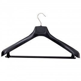 Вешалка-плечики р.52-54, пластик, плоская, перекладина, крючки для бретелей, черная, BRABIX, 601655