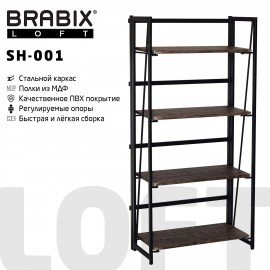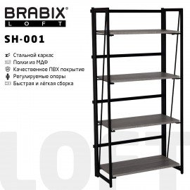 Стеллаж на металлокаркасе "BRABIX LOFT SH-001", 600х300х1250 мм, складной, цвет морёный дуб, 641228