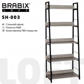 Стеллаж на металлокаркасе BRABIX "LOFT SH-003", 600х350х1500 мм, 5 полок, цвет морёный дуб, 641234