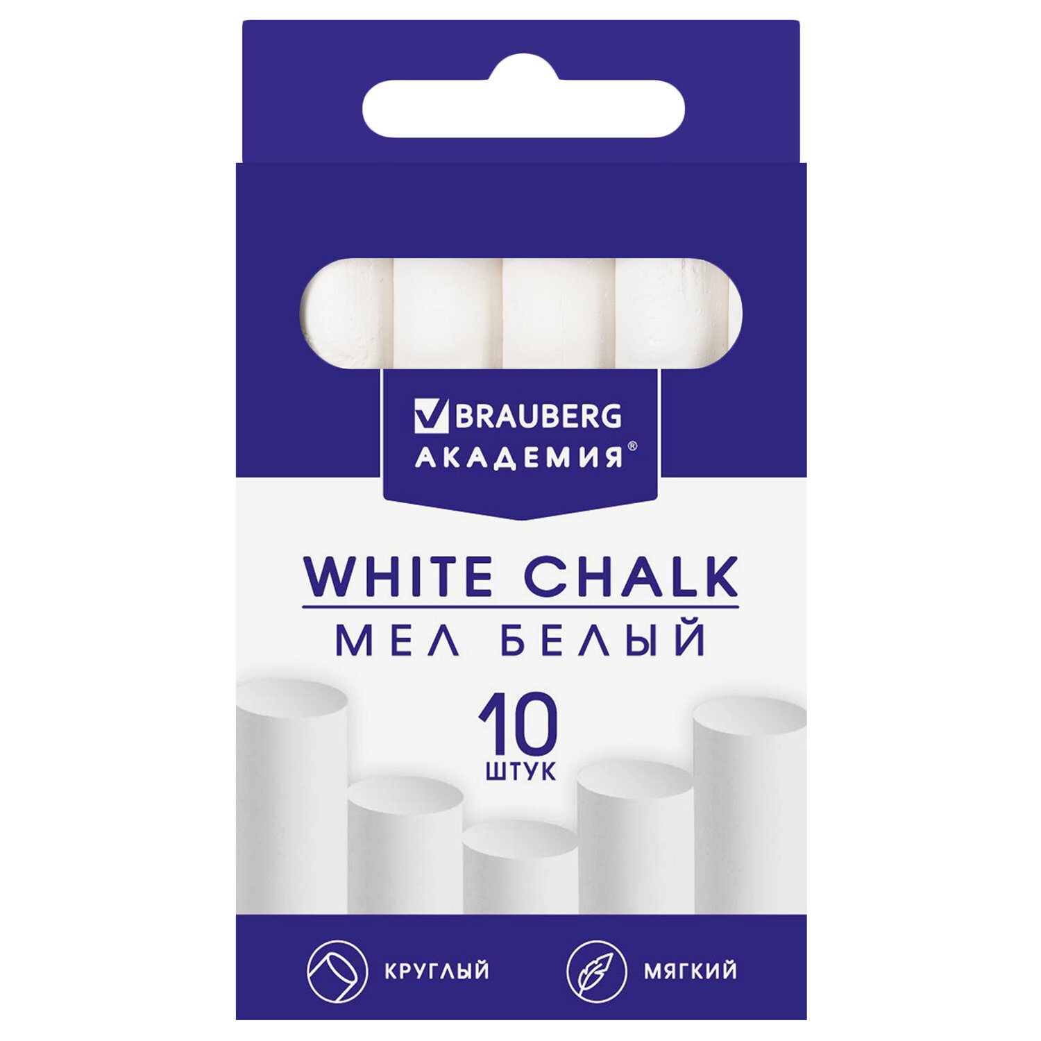 Мел белый круглый мягкий 10 штук, BRAUBERG "АКАДЕМИЯ", картонная упаковка, европодвес (АЛГЕМ), 271147