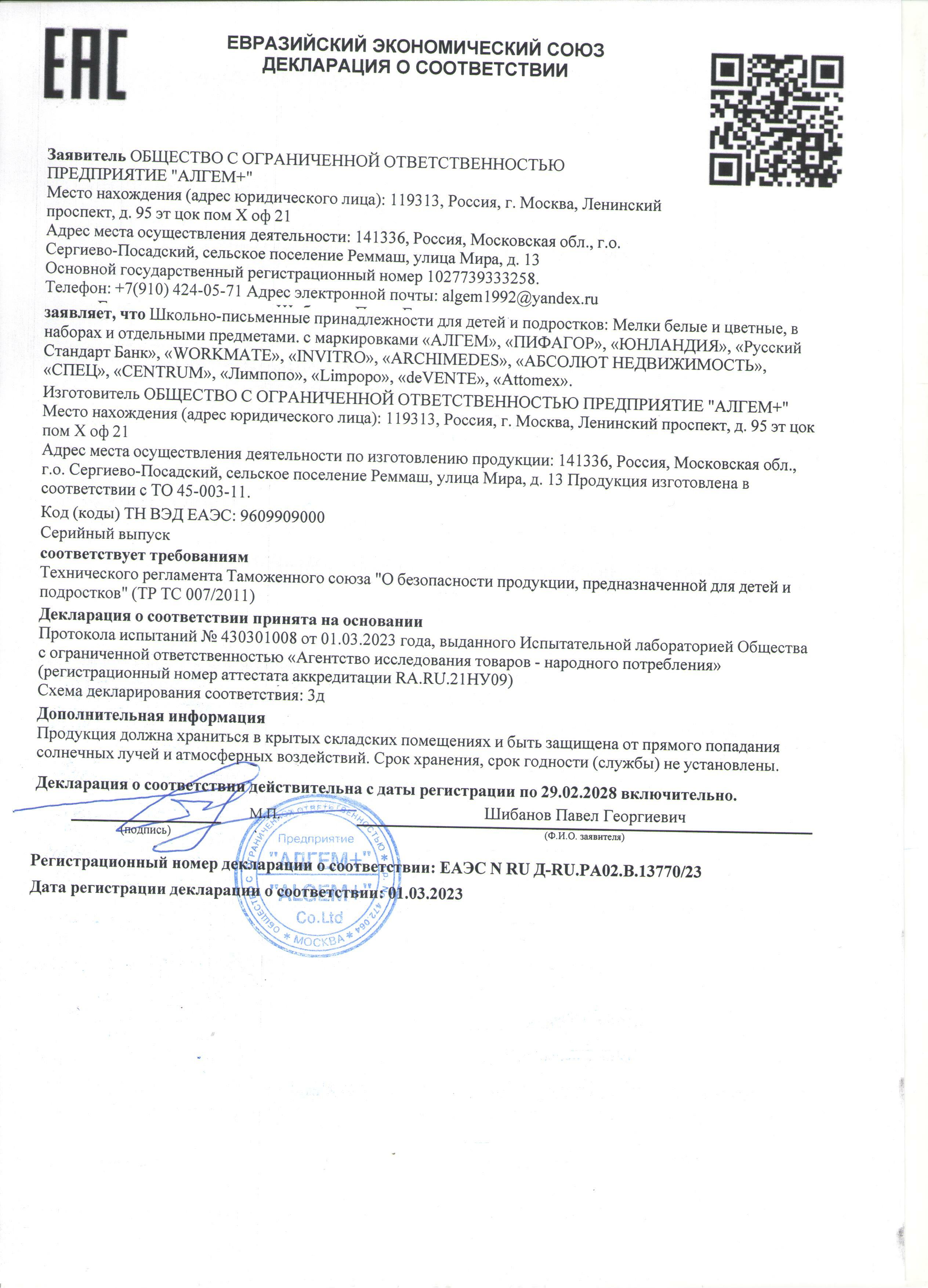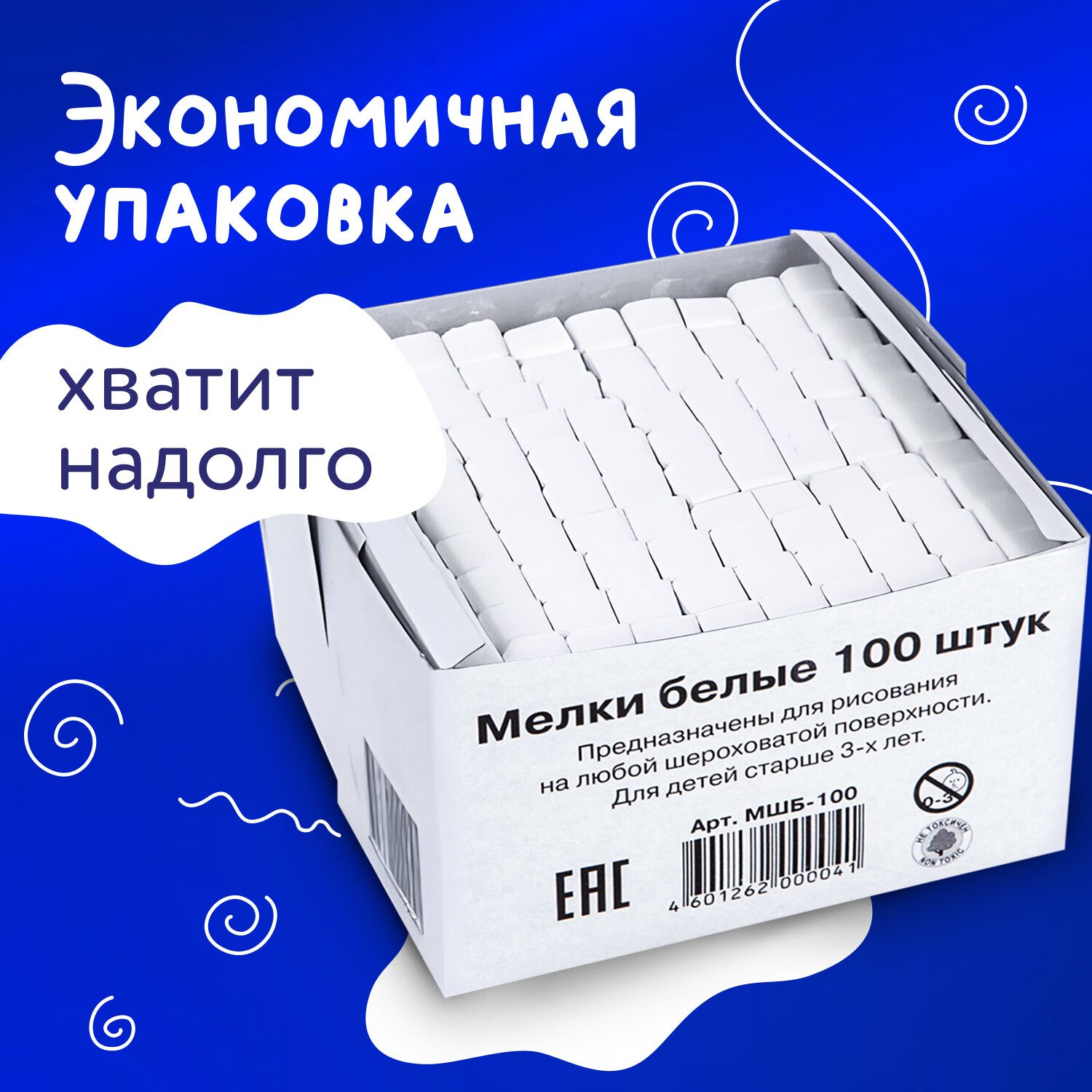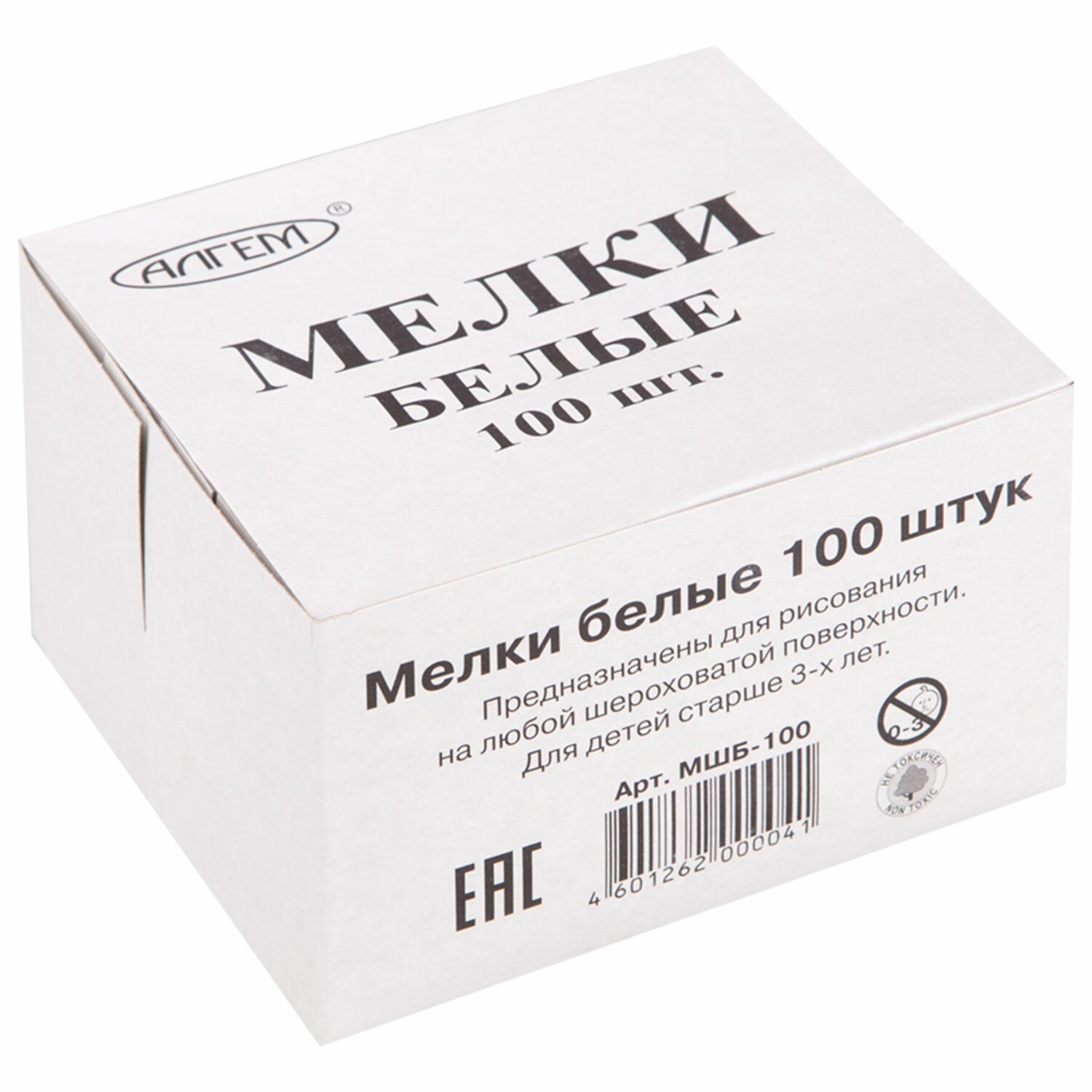 Мел белый квадратный 100 штук, АЛГЕМ, картонная упаковка, 00041, МШБ 100