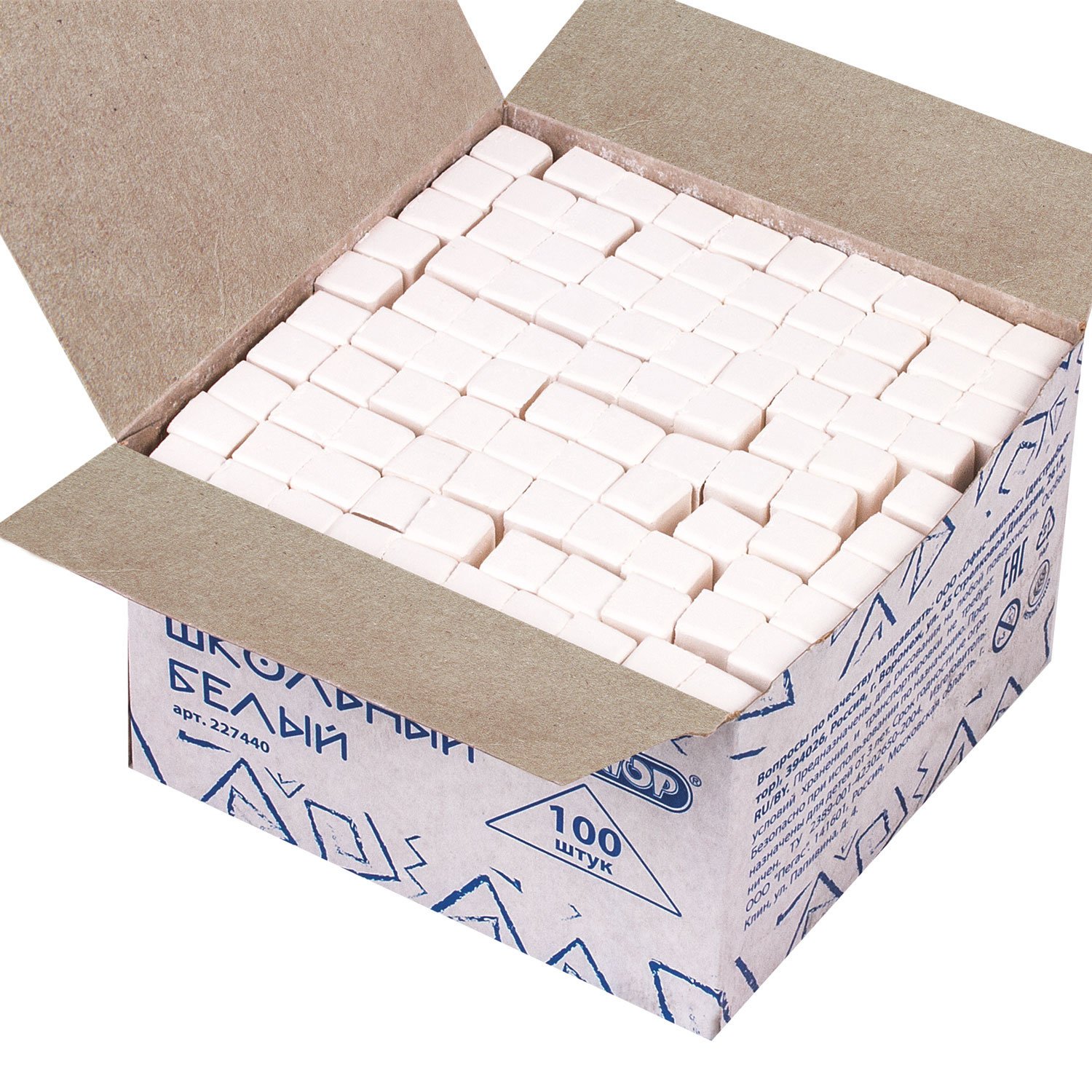 Мел белый квадратный 100 штук, АЛГЕМ, картонная упаковка, 00041, МШБ 100