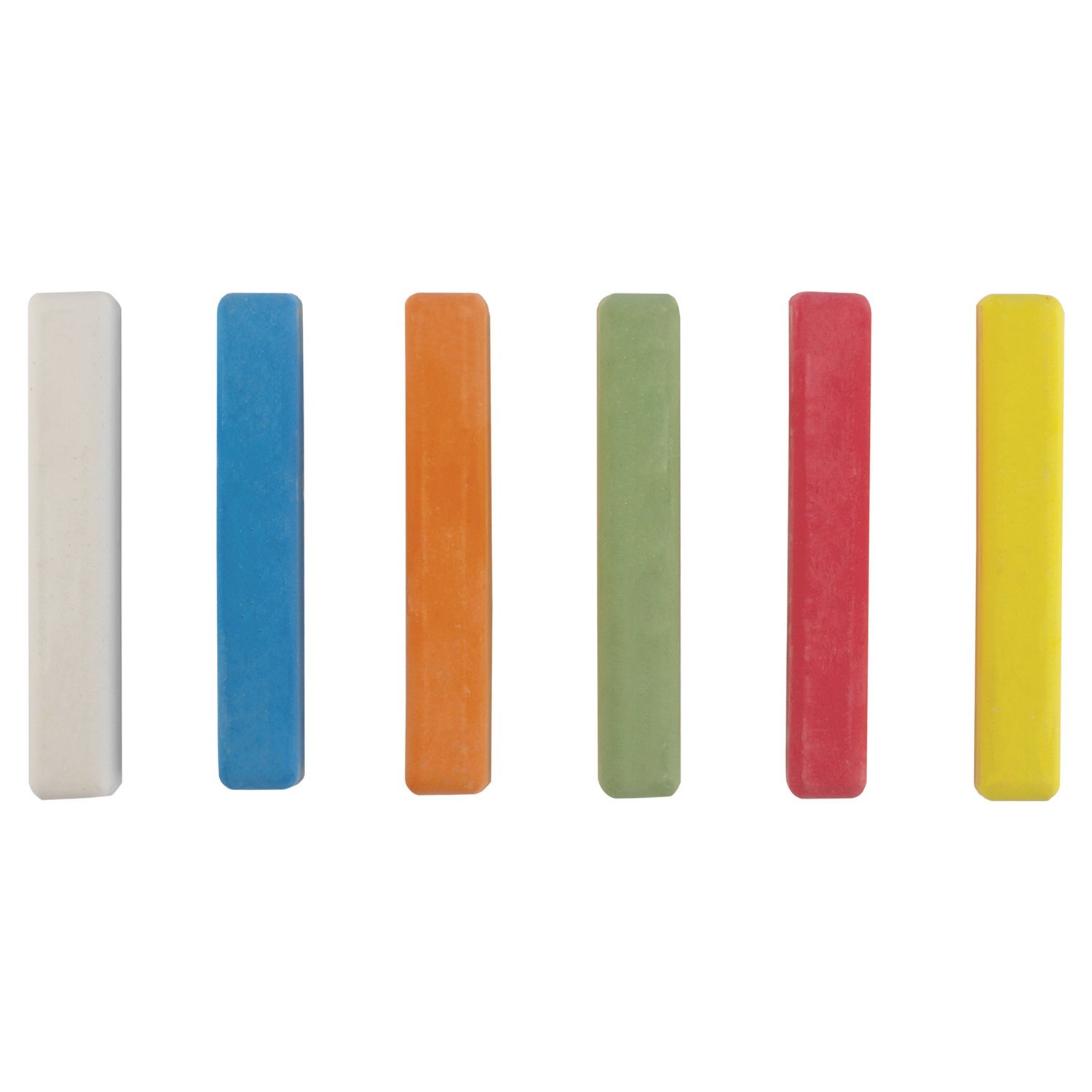 Изготовлен из высококачественного природного сырья без химических добавок. Не содержит твердых включений и не портит поверхность досок. Благодаря квадратной форме легко ложится в руку. Мел средней твердости. Не оставляет царапин. Легко смывается водой. Длина - 76 мм, диаметр - 13 мм. В наборе 5 цветных мелков (красный, желтый, зеленый, голубой, оранжевый) и 1 белый, всего - 6 штук.