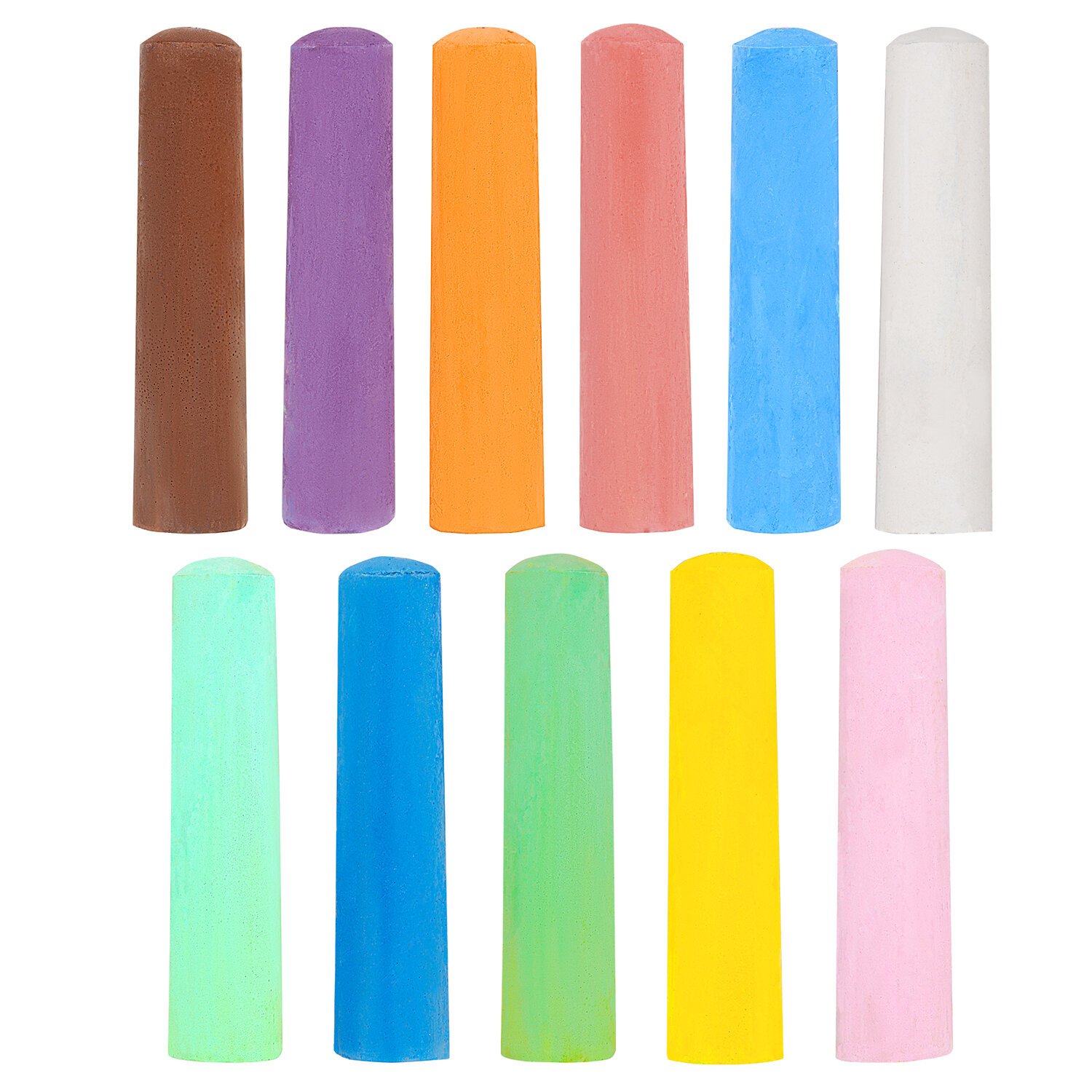Невероятно большой набор из 52 мелков! В набор входят два белых мелка, а также по пять мелков десяти разных цветов: красный, желтый, зеленый, светло-зеленый, оранжевый, голубой, светло-голубой, коричневый, розовый, фиолетовый. Благодаря круглой утолщенной форме мел удобно ложится в руку. Изготовлен из высококачественного природного сырья, нетоксичен. Легко смывается с рук. Мел упакован в пластиковый контейнер – идеально, чтобы хранить мел или брать его с собой.