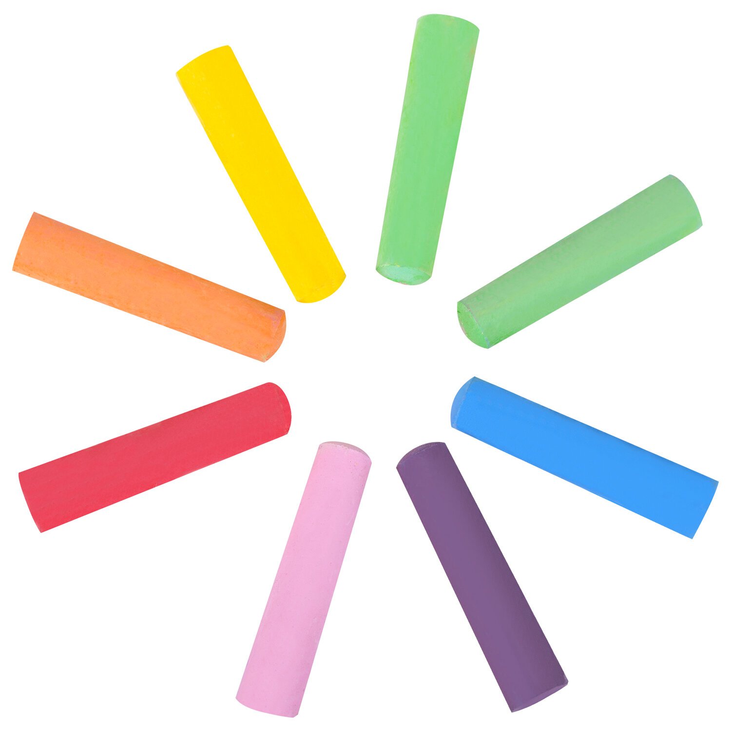 В наборе 8 мелков разных цветов: красный, желтый, зеленый, светло-зеленый, оранжевый, голубой, розовый, фиолетовый. Благодаря круглой утолщенной форме мел удобно ложится в руку. Изготовлен из высококачественного природного сырья, нетоксичен. Легко смывается с рук. Мел упакован в пластиковое ведерко – идеально, чтобы хранить мел или брать его с собой.