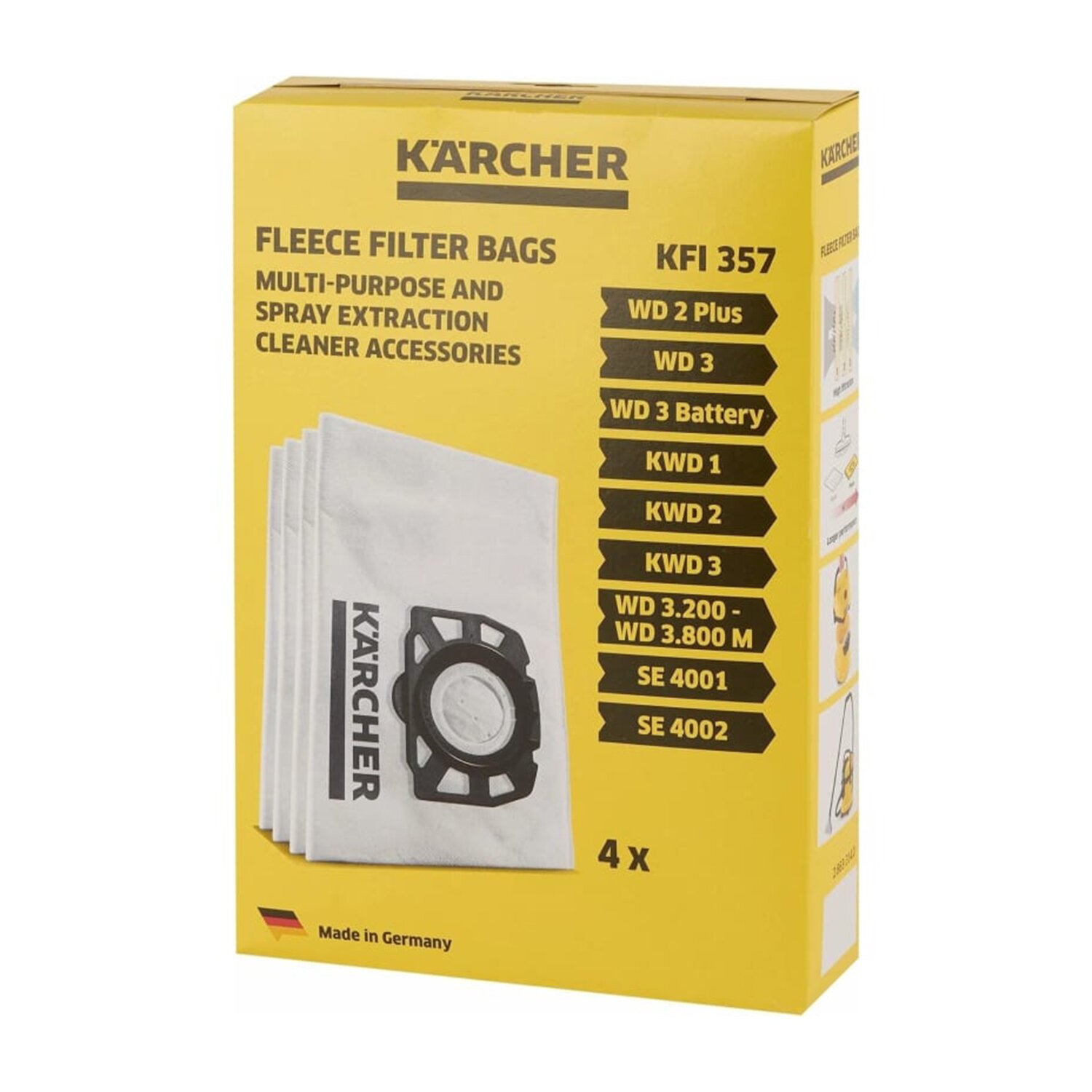 Фильтр-мешки из нетканого материала KFI 357 для хозяйственных пылесосов KARCHER серии WD 2 Plus, WD 3, WD 3 Battery и KWD 1 - KWD 3, а также моющих пылесосов SE 4001, SE 4002.