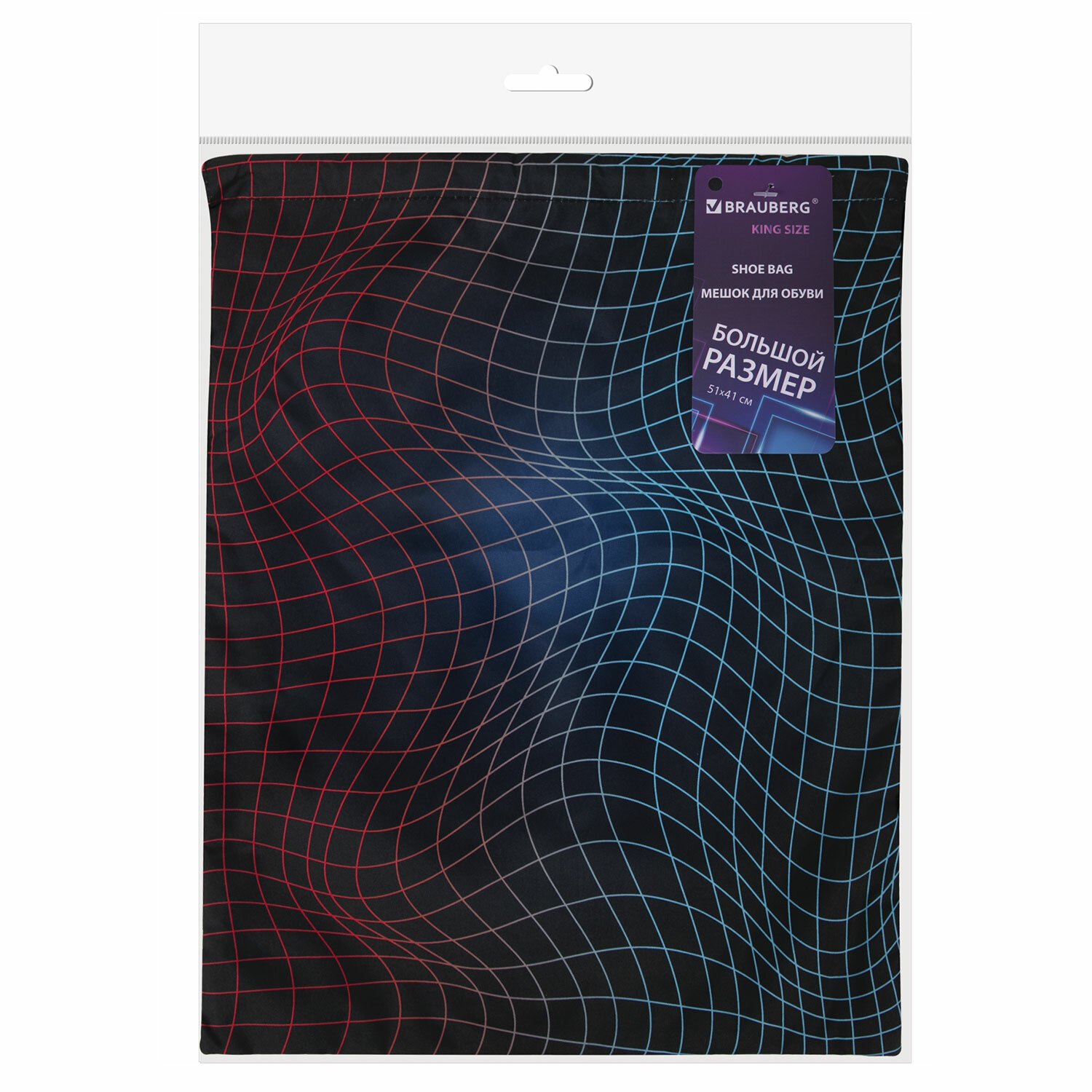 Мешок для обуви BRAUBERG KING SIZE изготовлен из плотного полиэстера с водоотталкивающей пропиткой. Яркая и четкая печать дизайна на мешке достигнута за счет использования высококачественной ткани с высокой плотностью.