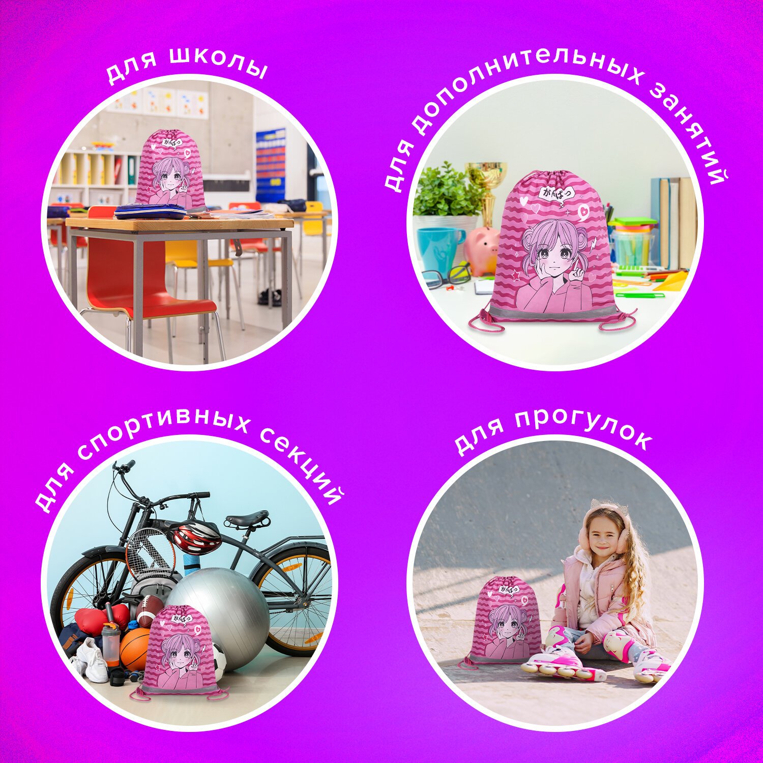 Мешок для обуви BRAUBERG KIDS, светоотражающая полоса, 46х36 см, "Anime style", 272391