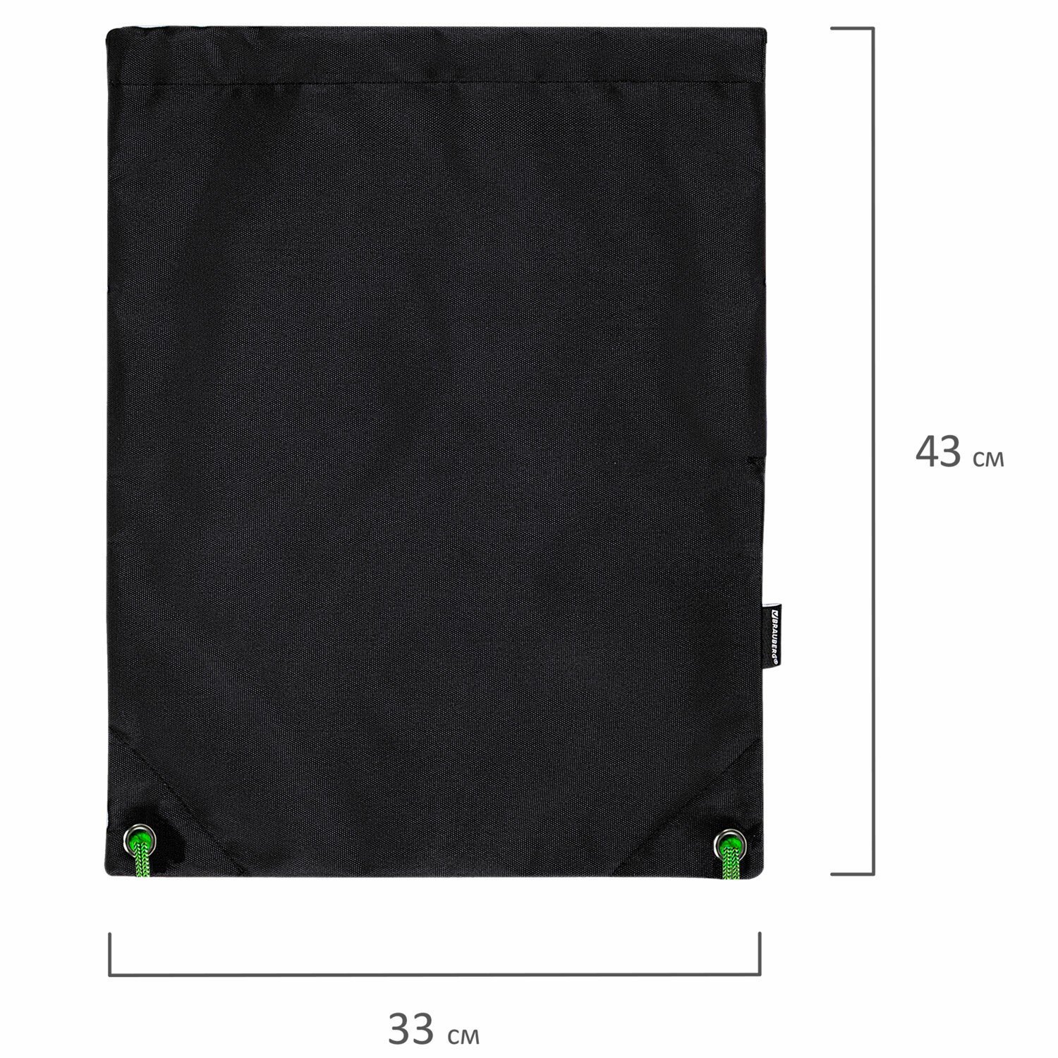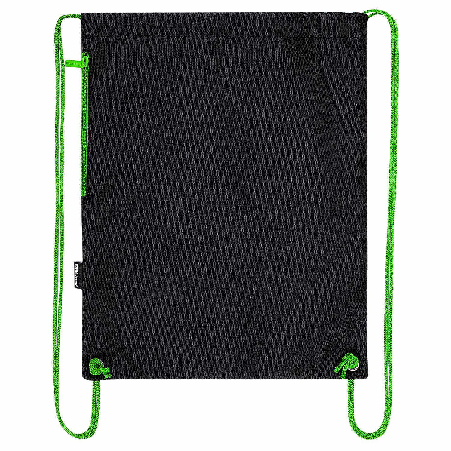 Мешок для обуви BRAUBERG плотный, карман на молнии, подкладка, 43х33 см, "Neon Green", 271625