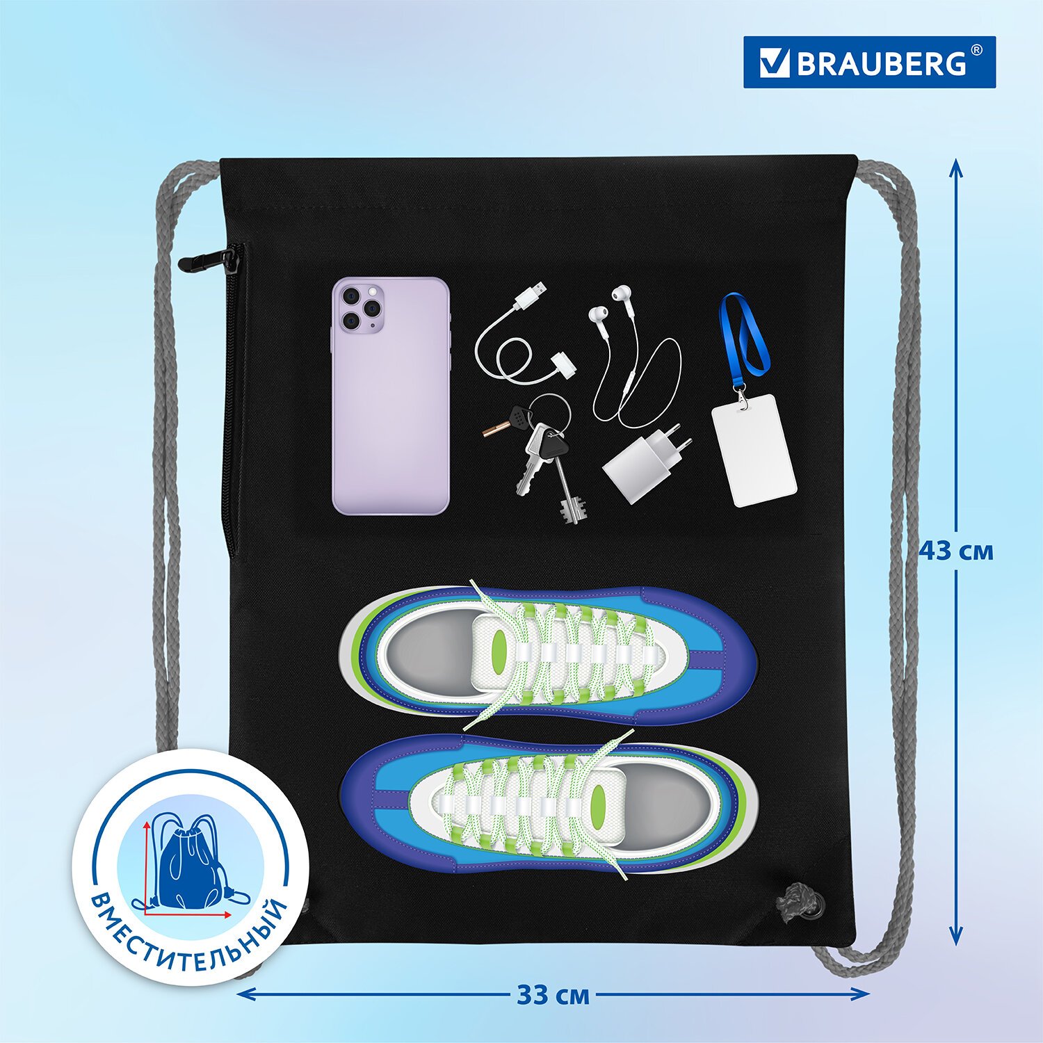 Мешок для обуви BRAUBERG PREMIUM изготовлен из плотного полиэстера с водоотталкивающей пропиткой. Яркая и четкая печать дизайна на мешке достигнута за счет использования высококачественной ткани с высокой плотностью.