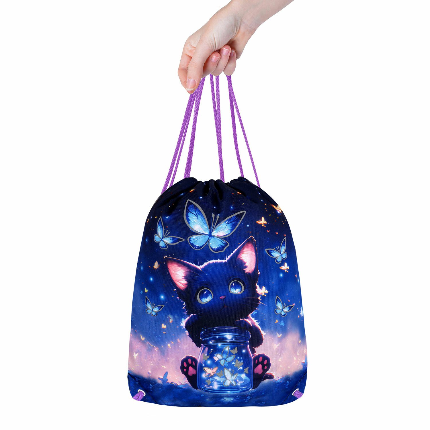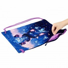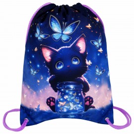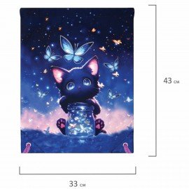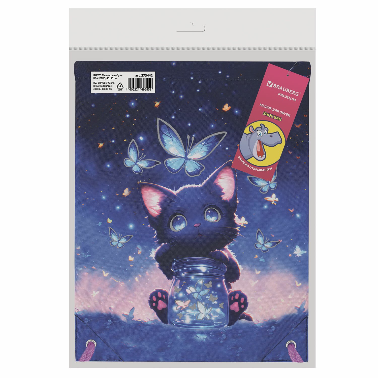 Мешок для обуви BRAUBERG PREMIUM, карман, подкладка, светоотражайка, 43х33 см, "Neon cat", 271621