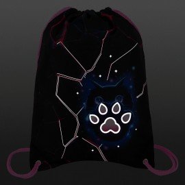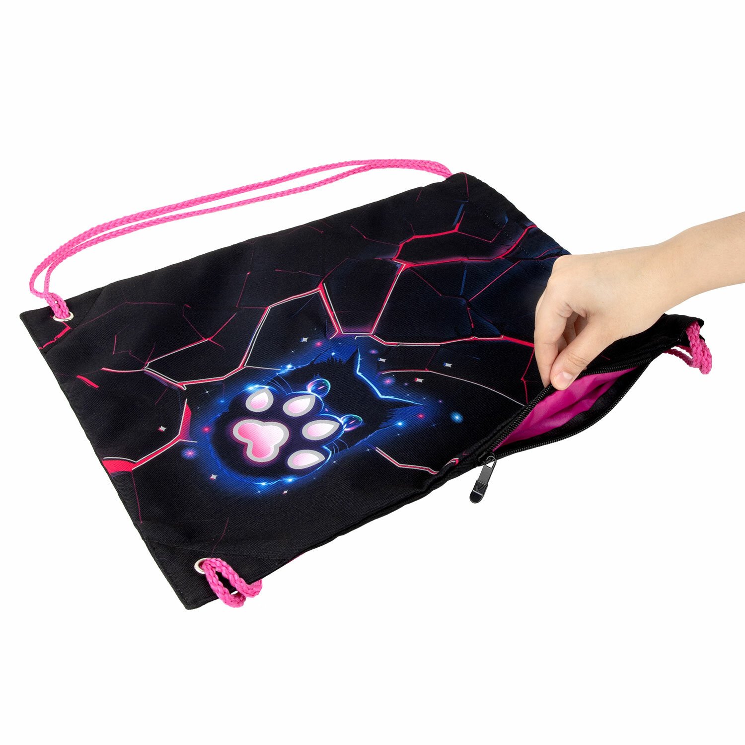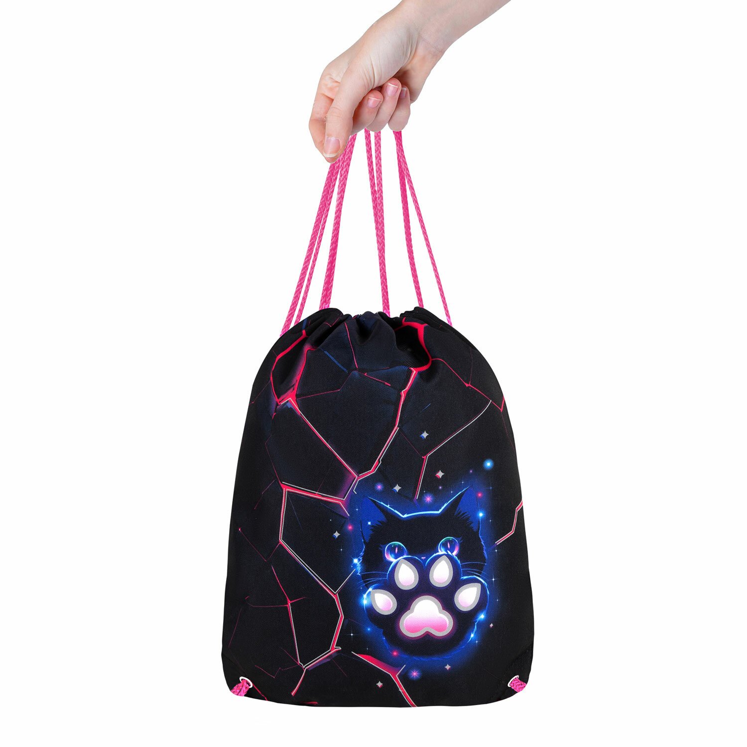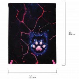 Мешок для обуви BRAUBERG PREMIUM, карман, подкладка, светоотражайка, 43х33 см, "Neon cat", 271621