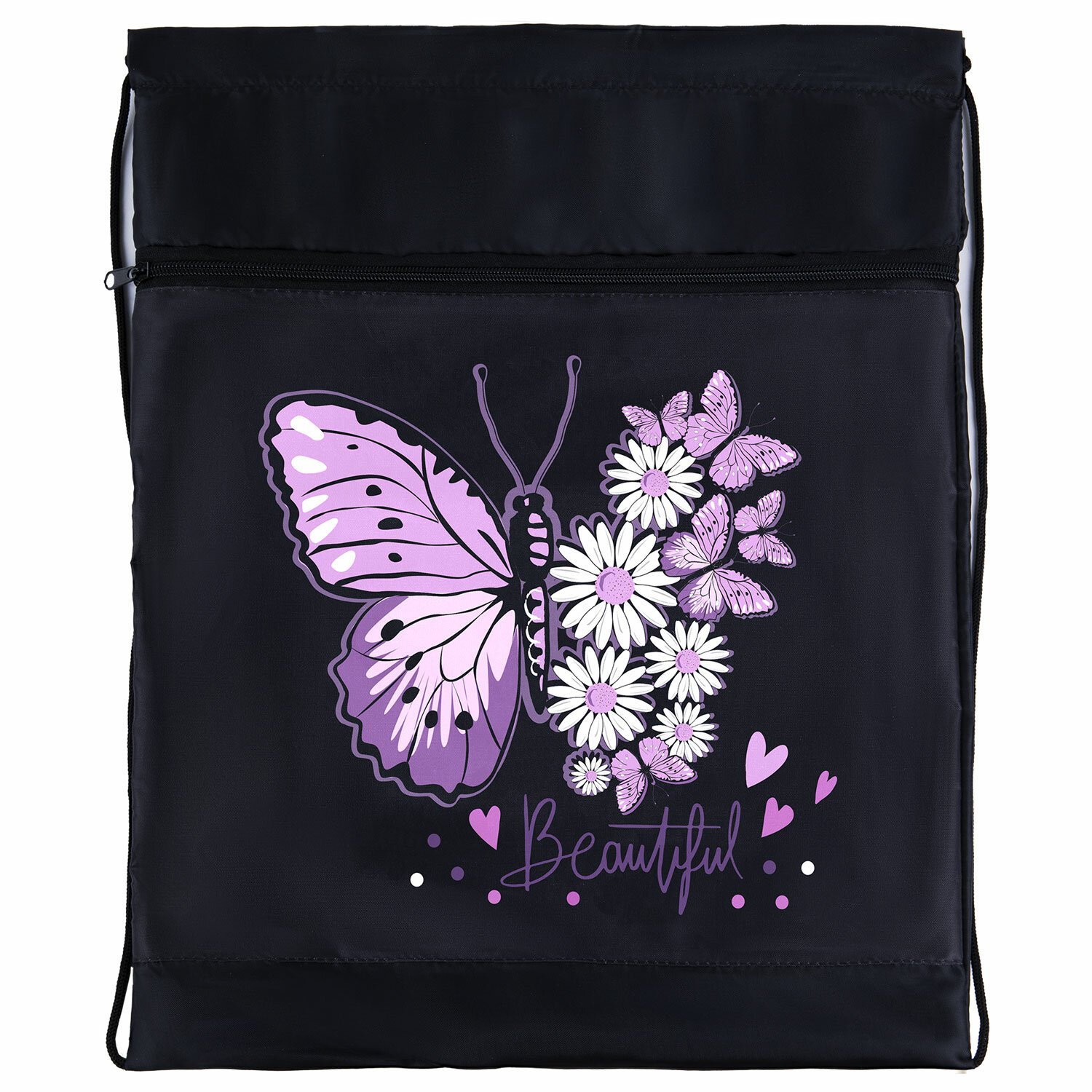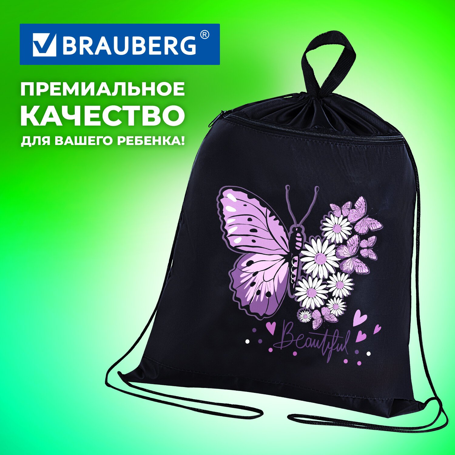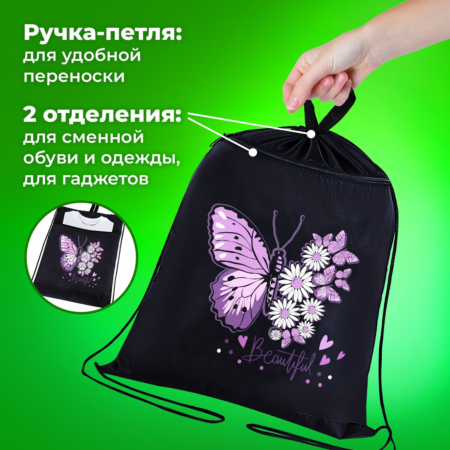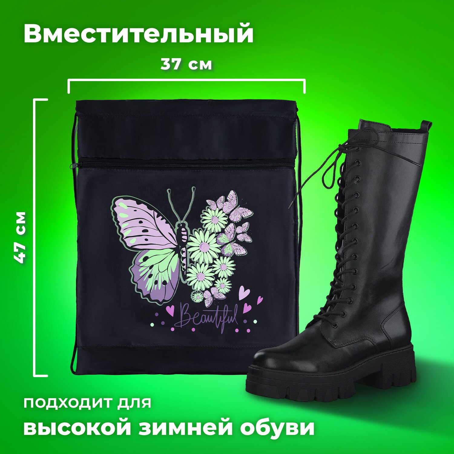 Мешок для обуви BRAUBERG, с петлёй, карман на молнии, 47х37 см, "Butterfly", 271607