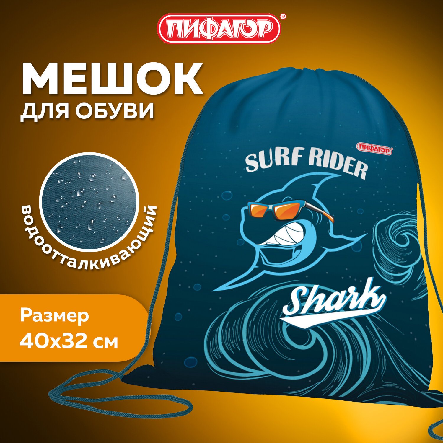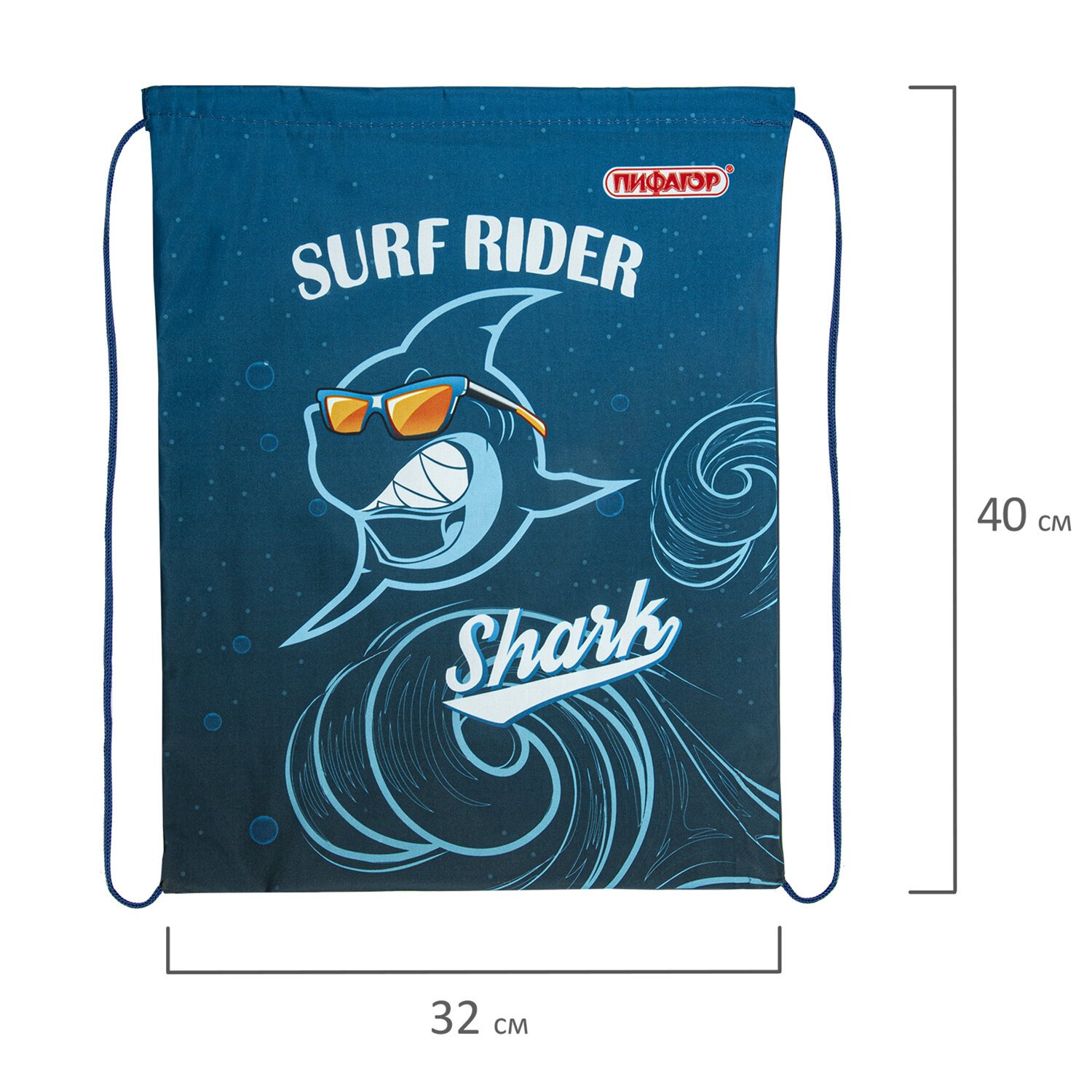 Мешок для обуви ПИФАГОР, 1 отделение, 40х32 см, "Shark attack", 271604