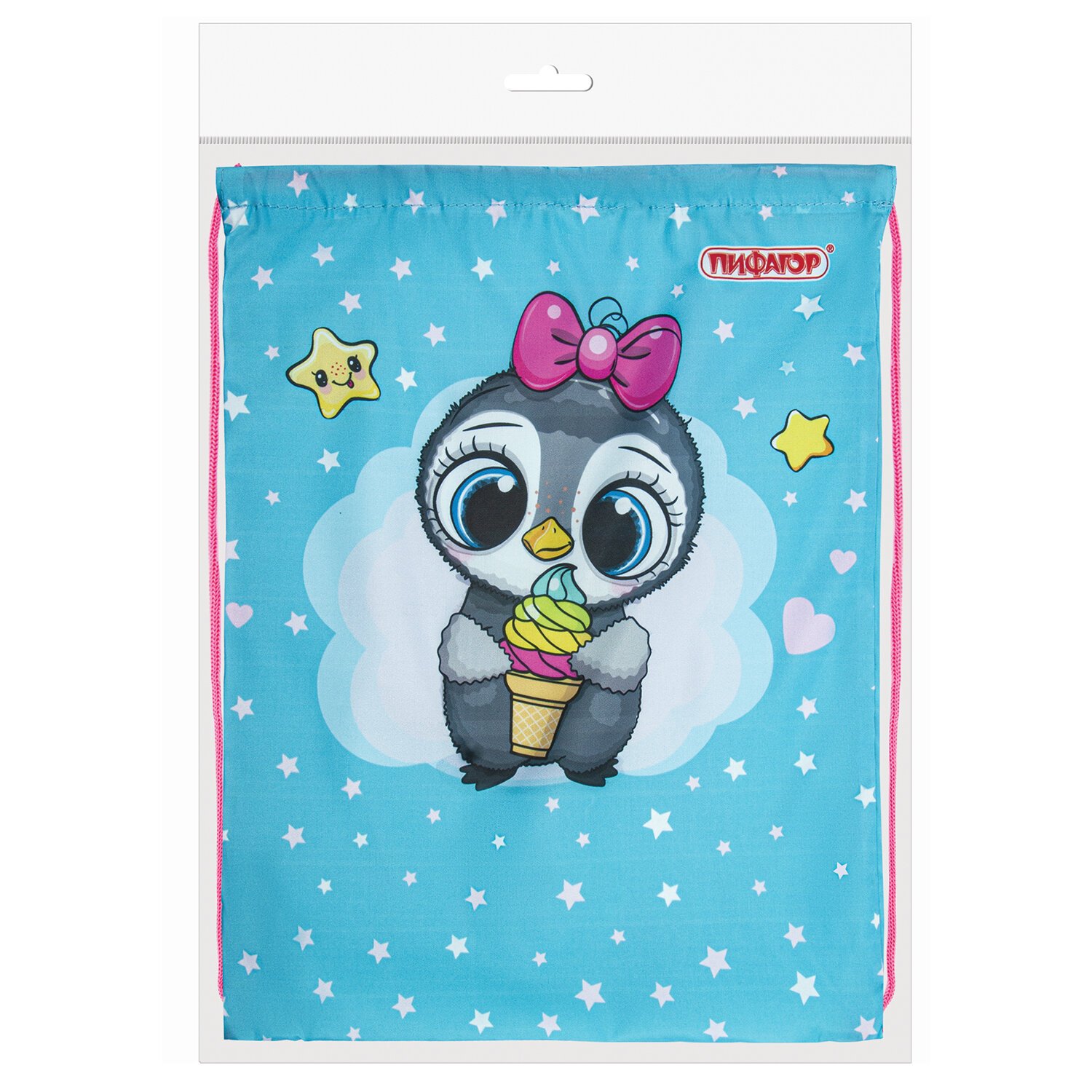 Мешок для обуви ПИФАГОР, 1 отделение, 40х32 см, "Smart penguin", 271602