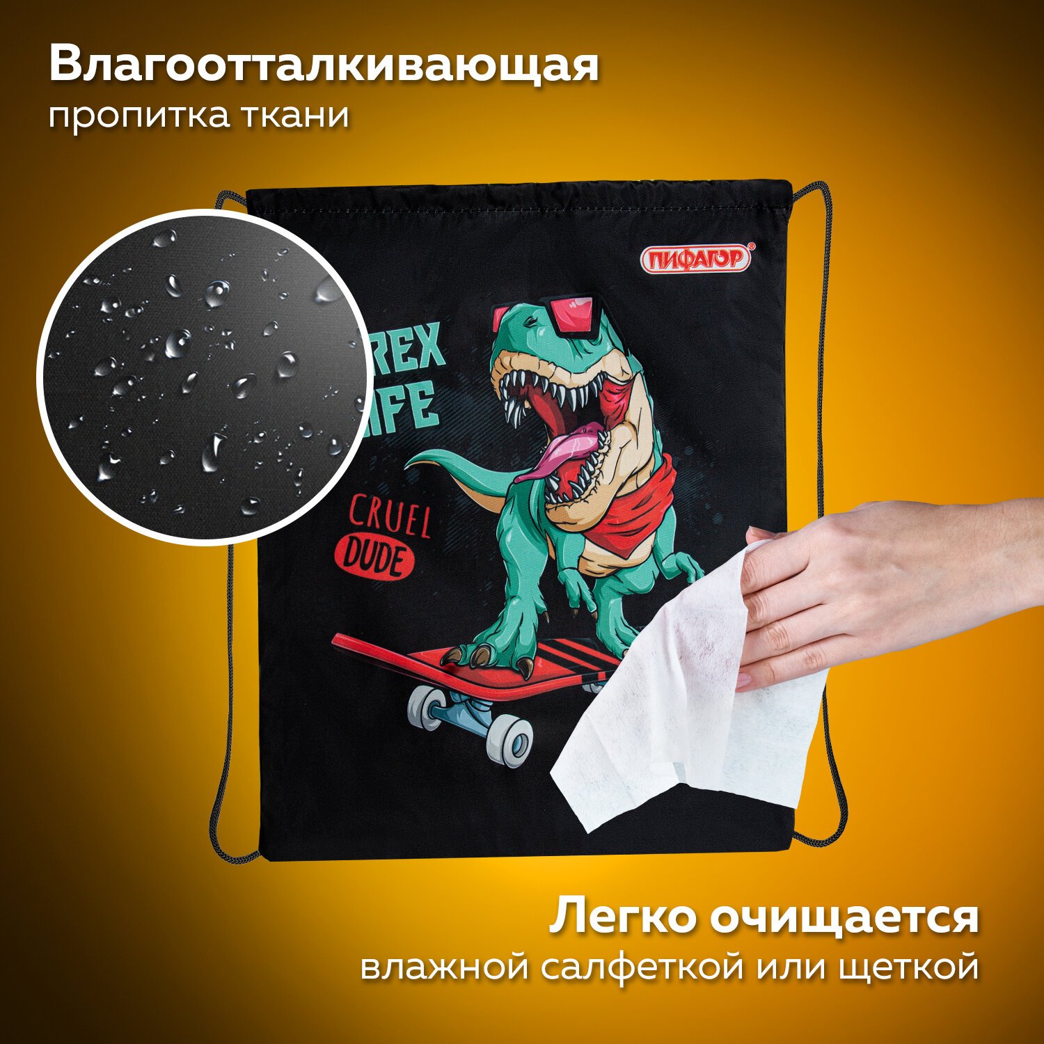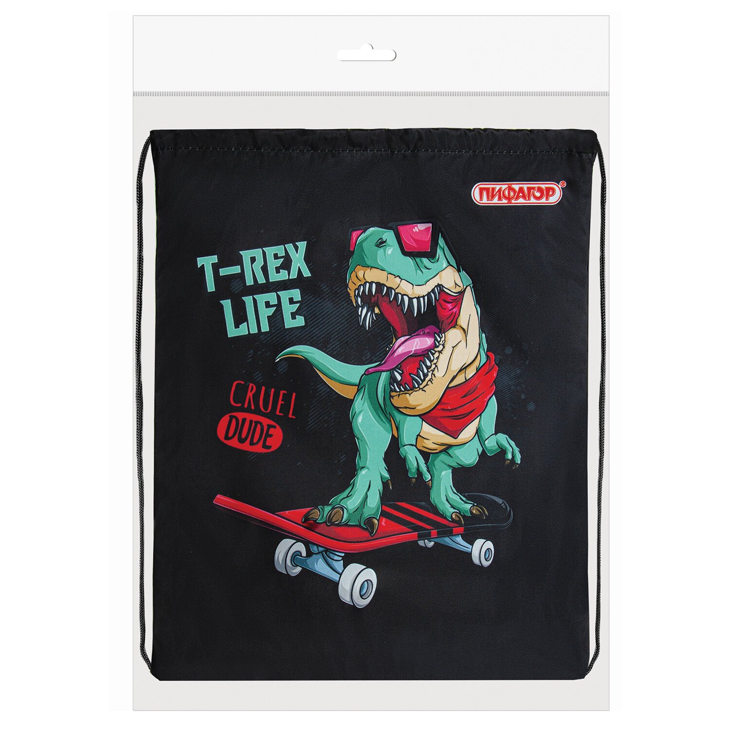 Мешок для обуви ПИФАГОР, 1 отделение, 40х32 см, "T-Rex", 271606
