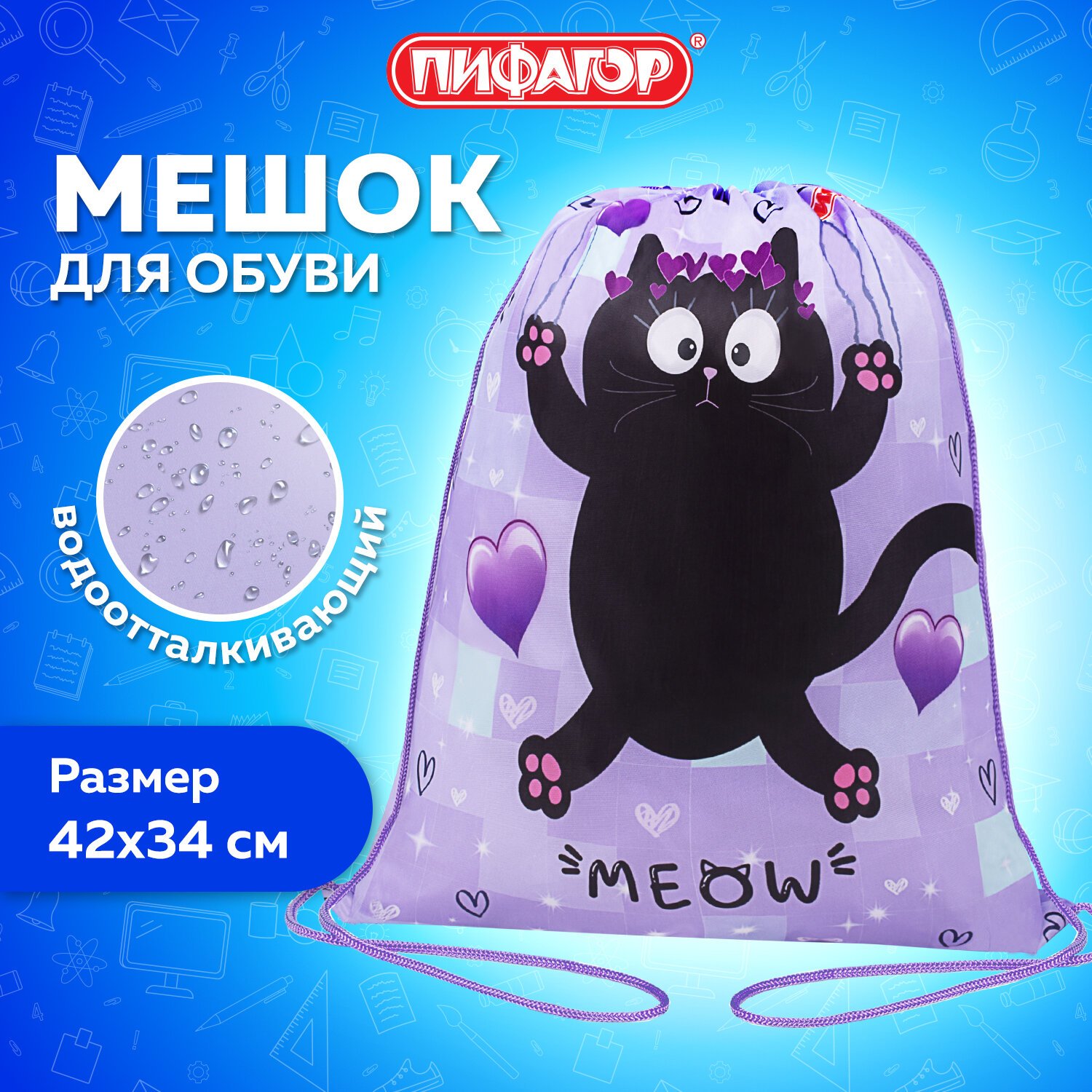 Мешок для обуви ПИФАГОР, 1 отделение, 42х34 см, "Falling cat", 272383