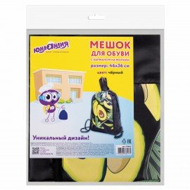 Мешок для обуви упакован в плотный ПЭТ пакет, который сохранит качество и товарный вид при хранении и транспортировке.