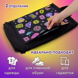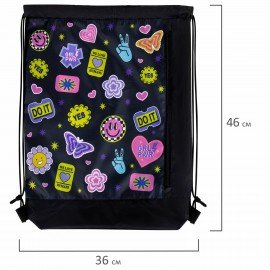 Мешок для обуви ЮНЛАНДИЯ с ручками, боковой карман на молнии, 46х36 см, "Patches", 272406