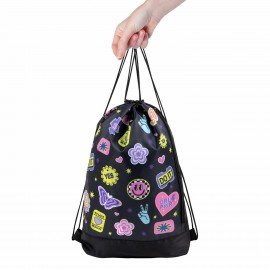 Мешок размером 46х36 см имеет одно вместительное отделение и большой боковой карман на молнии. Передний карман может выполнять роль полноценного отделения, с возможностью отдельного хранения уличной и сменной обуви, а также физкультурной формы и одежды для внешкольных занятий. Наличие двух ручек позволяет переносить мешок в руках и вешать на крючок в школе.