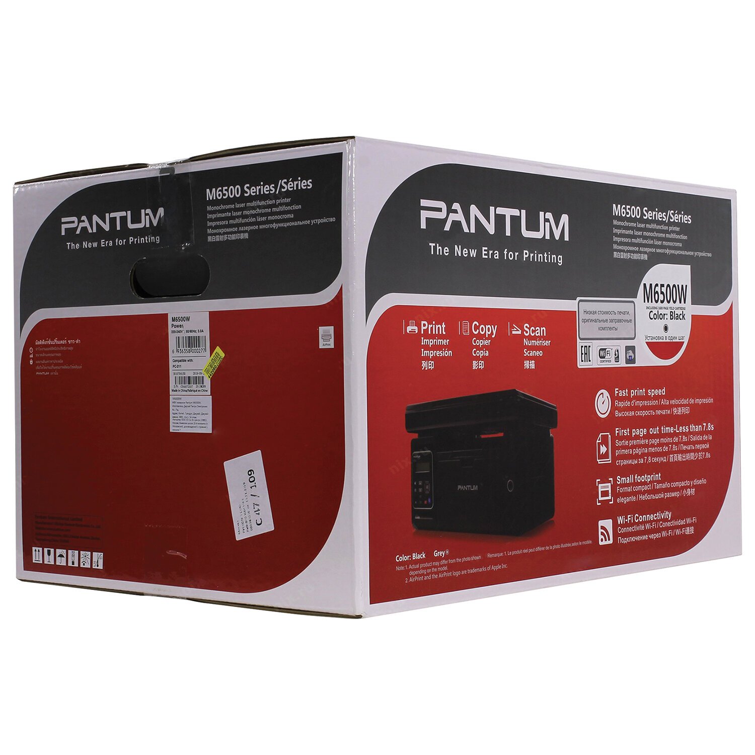 МФУ лазерное Pantum M6500W совмещает в себе функционал принтера, сканера и копира. Лазерный принтер в составе МФУ печатает на листах формата A4 с максимальным разрешением черно-белой печати 1200x1200 dpi. Скорость ч/б печати достигает 22 страниц в минуту. Устройство совместимо с компьютерами, работающими на ОС Windows, Linux, MacOS.